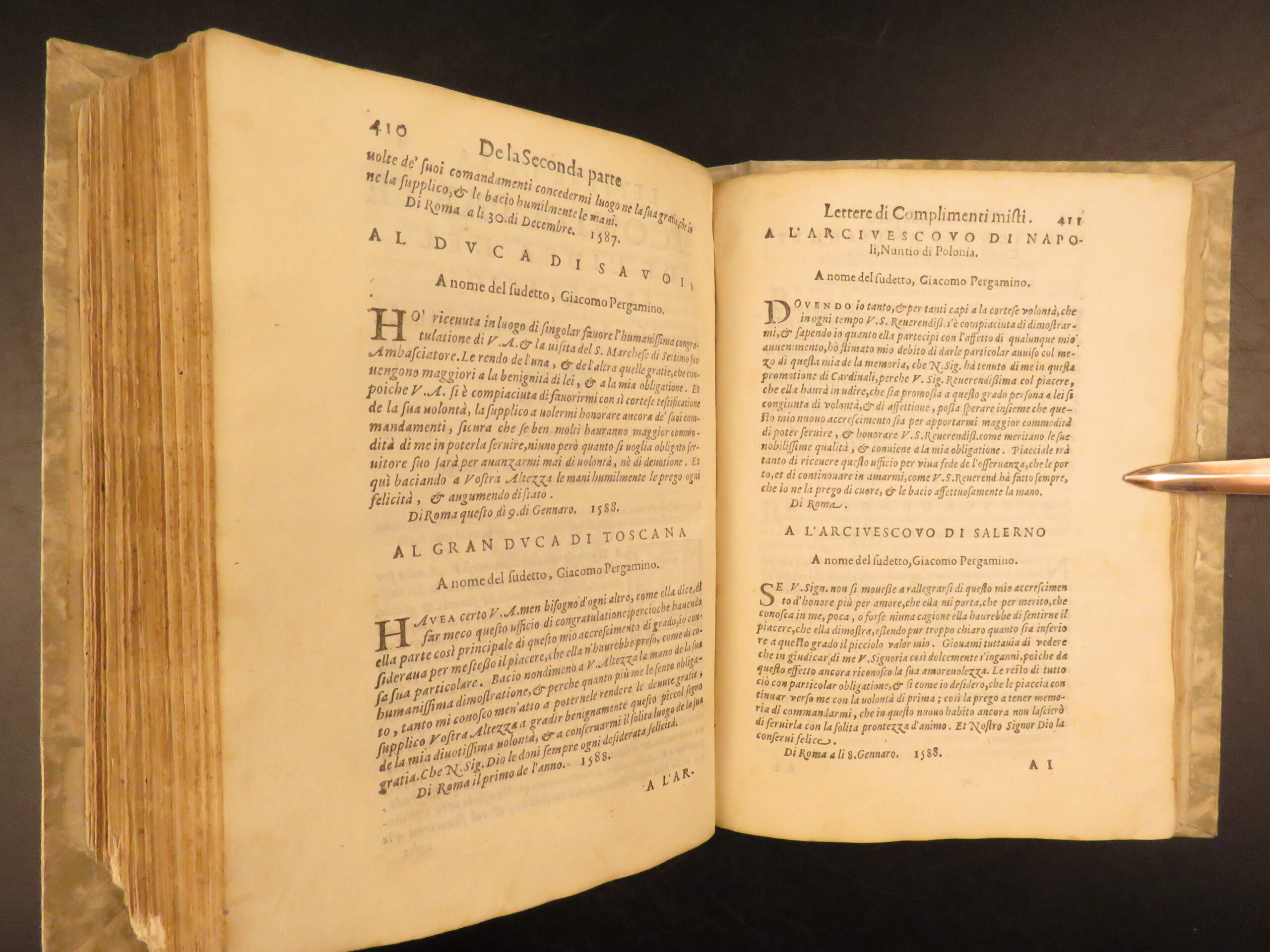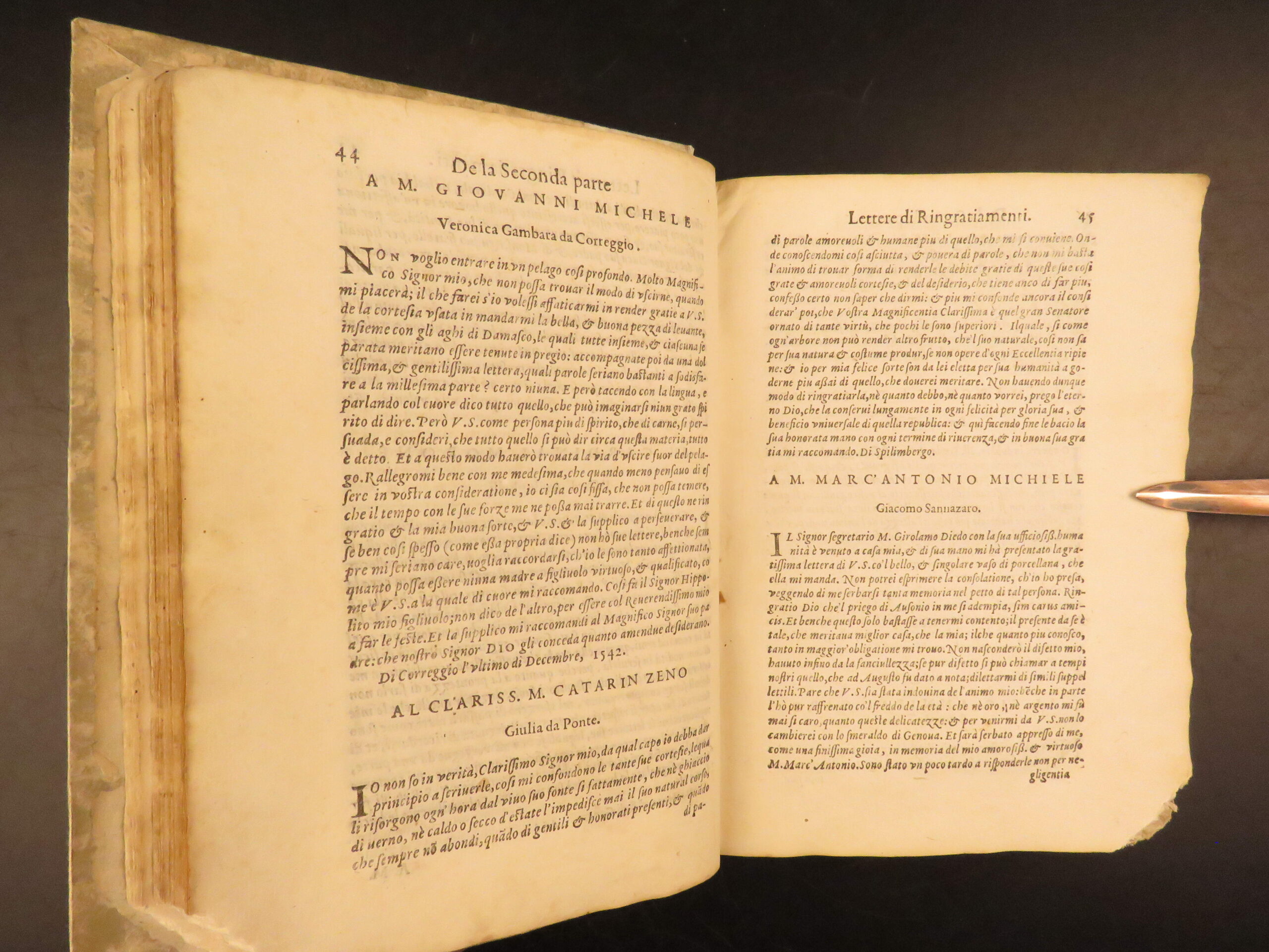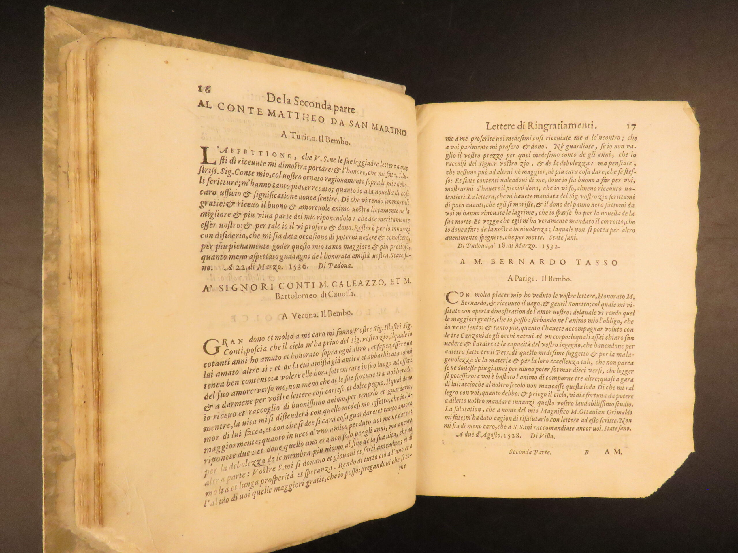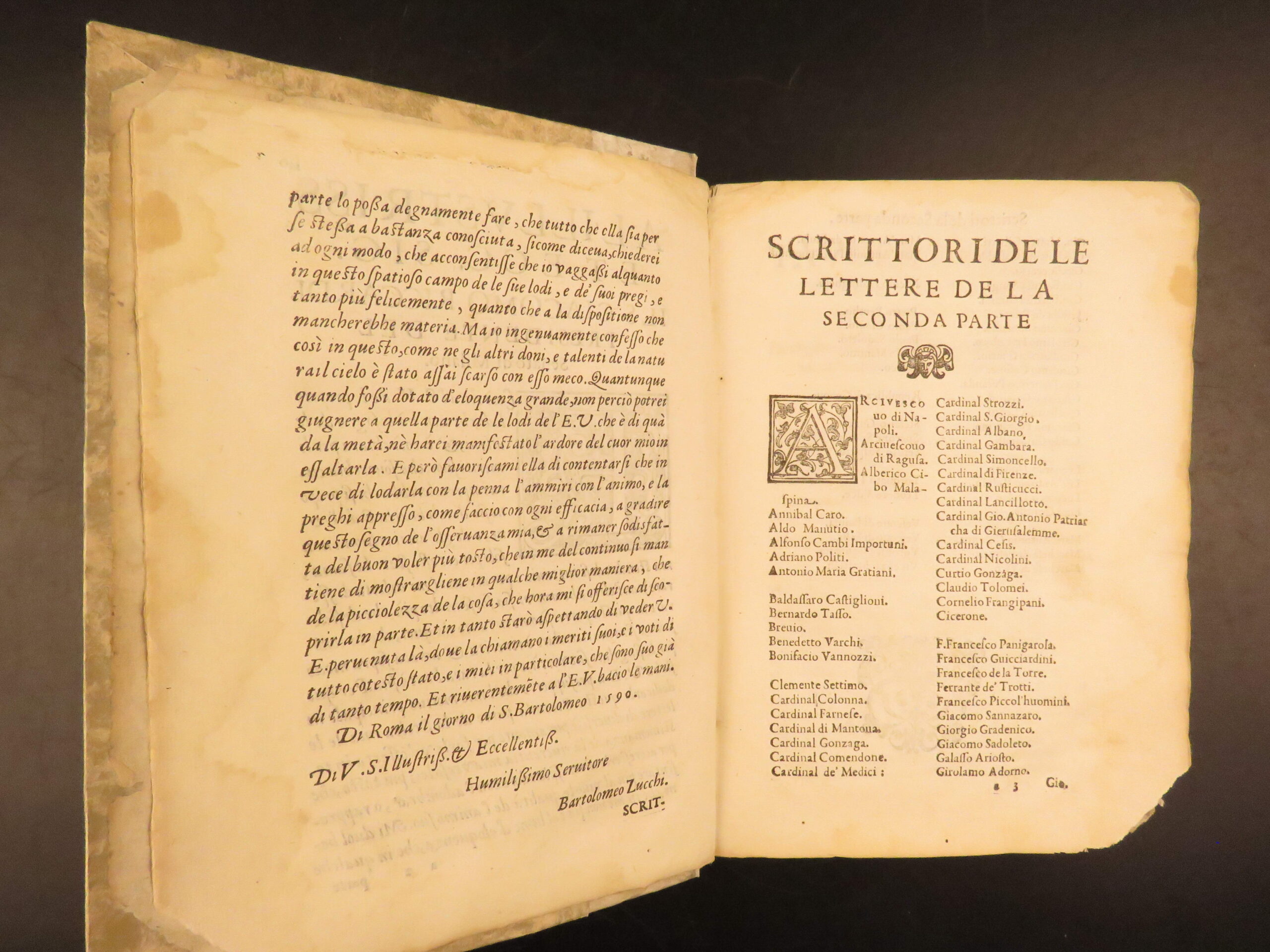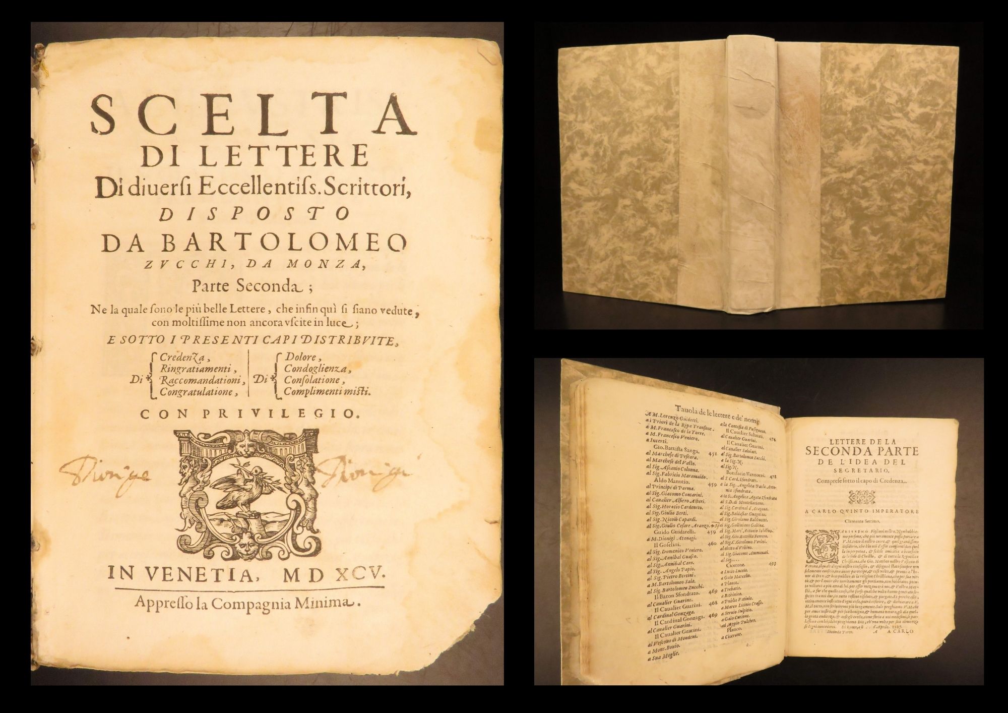 Rare 1595 Venetian edition of Scelta di lettere, edited by Bartolomeo Zucchi, containing first-print letters by Tasso, Bembo, Manuzio, and others focused on Italian political and literary life.