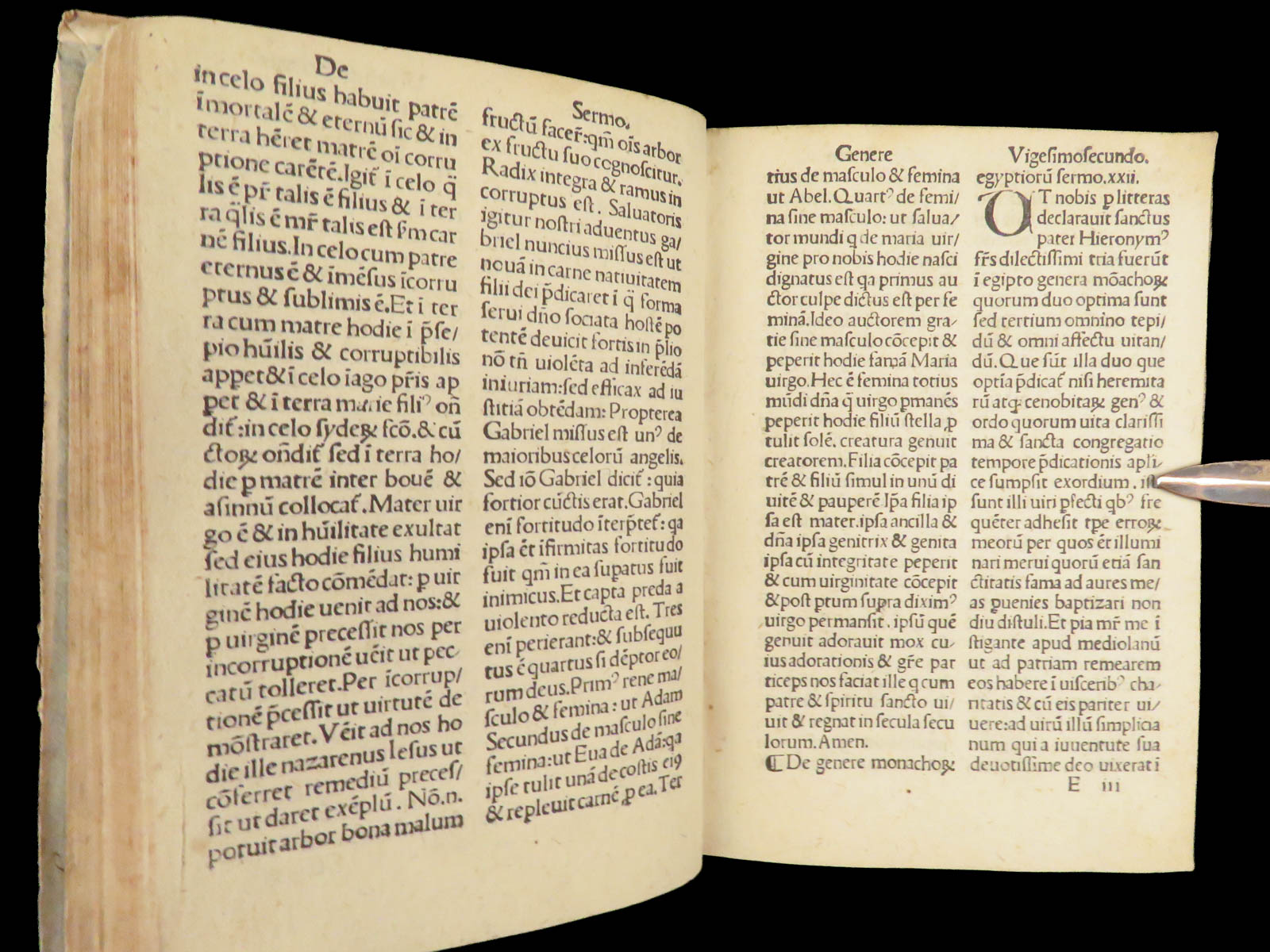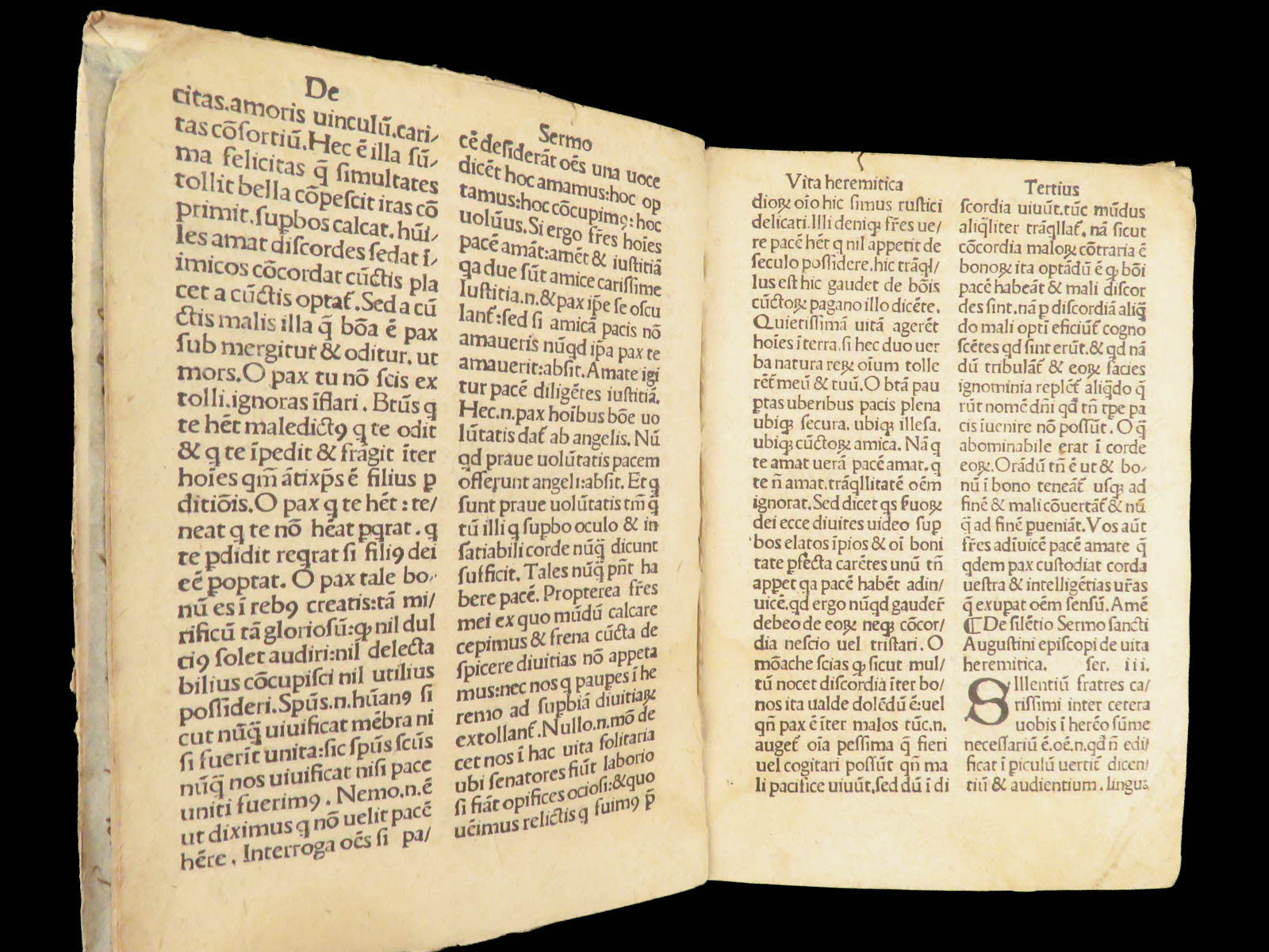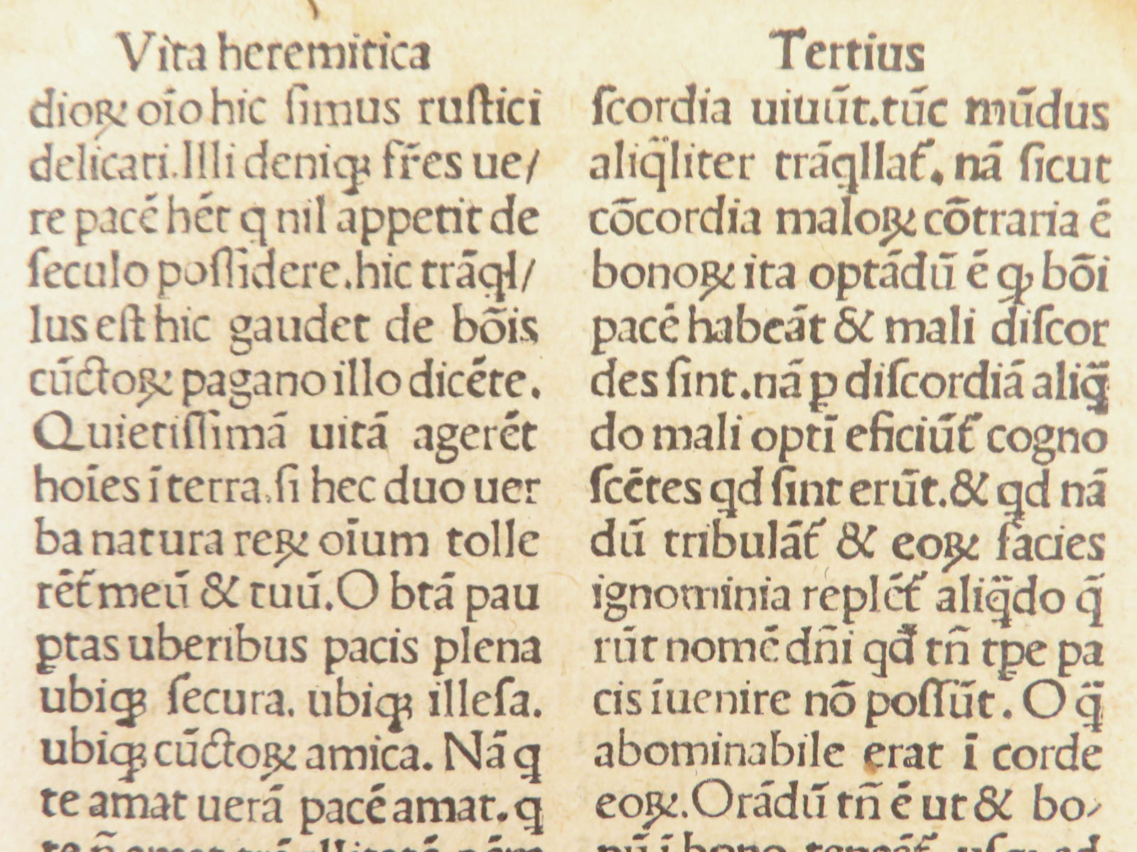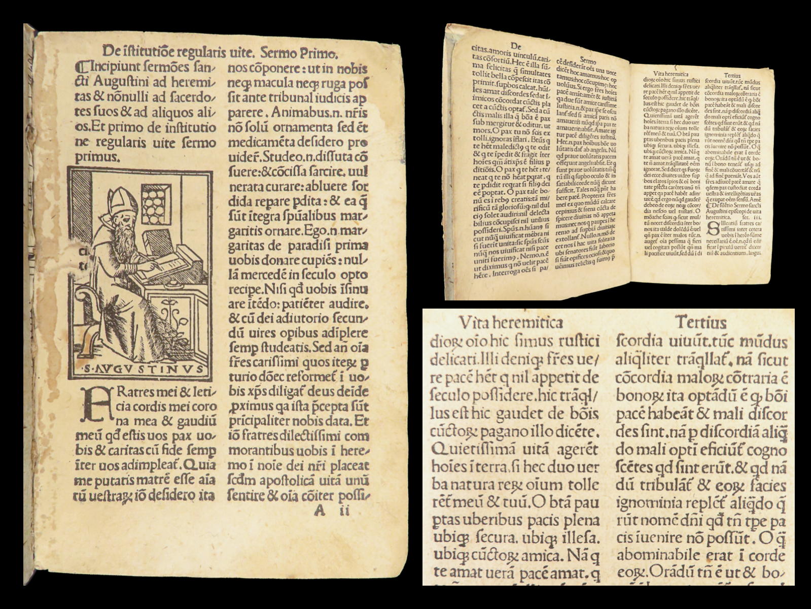 Sermones sancti Augustini ad heremitas is a rare 1517 Venetian printing of sermons written with the intention of growing Augustinian monastics in the 12th through 14th-centuries. This edition published by Sessa and Ravani and includes sermons directed at hermits, priests, and other churchmen. Notable sermons topics found in this edition include peace, silence, on obedience, prayer and confession, and even “De genere monachorum Aegyptiorum”, the way of life of Egyptian monks!