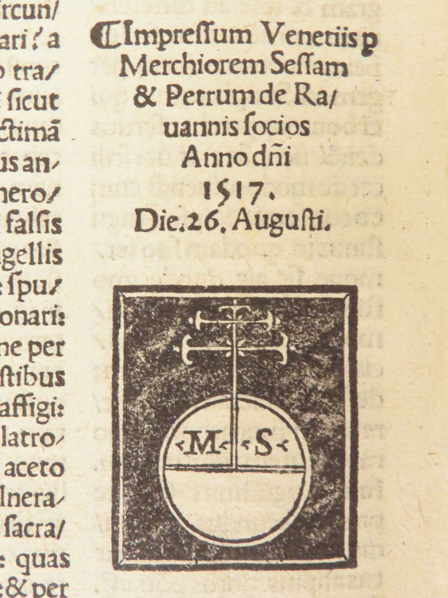 - Colophon: Impressum Venetiis p[er] Merchiorem [sic] Sessam & Petrum de Rauannis socios, [Venice], Anno d[omi]ni 1517. Die. 26. Augusti