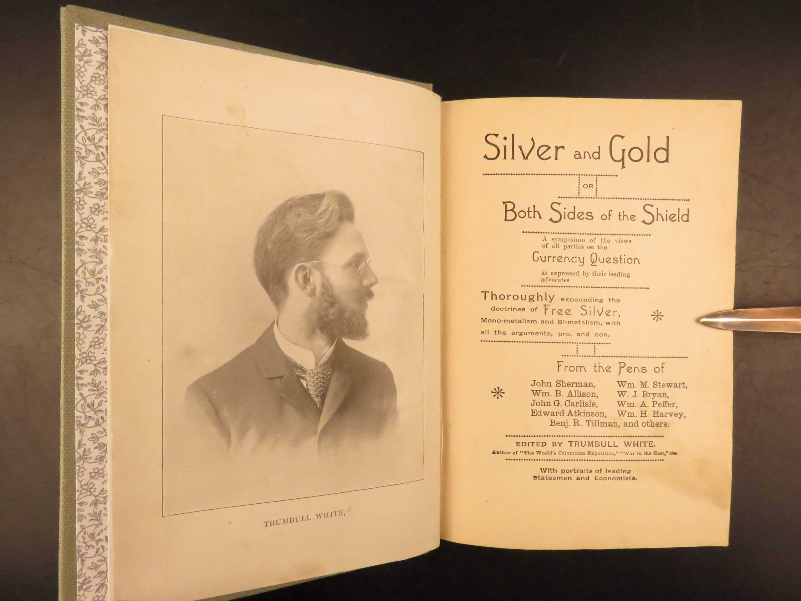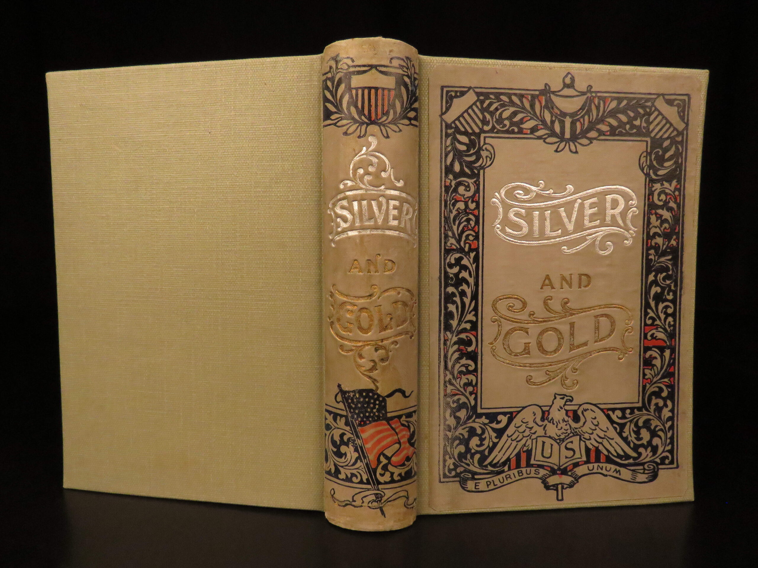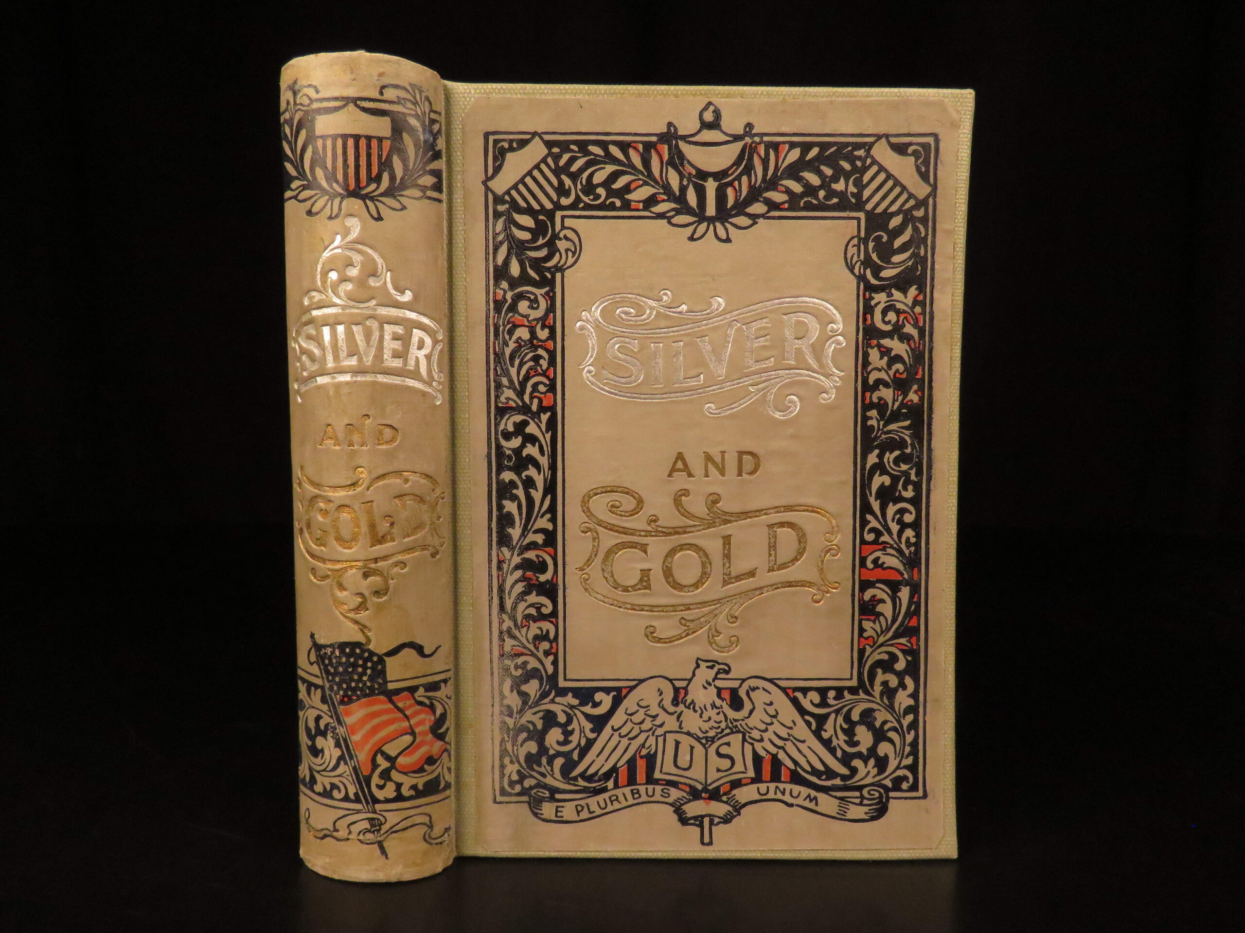 First edition of Trumbull White’s Silver and Gold, published in 1895 amid the U.S. currency debate, featuring perspectives from both camps and 32 portrait engravings.
