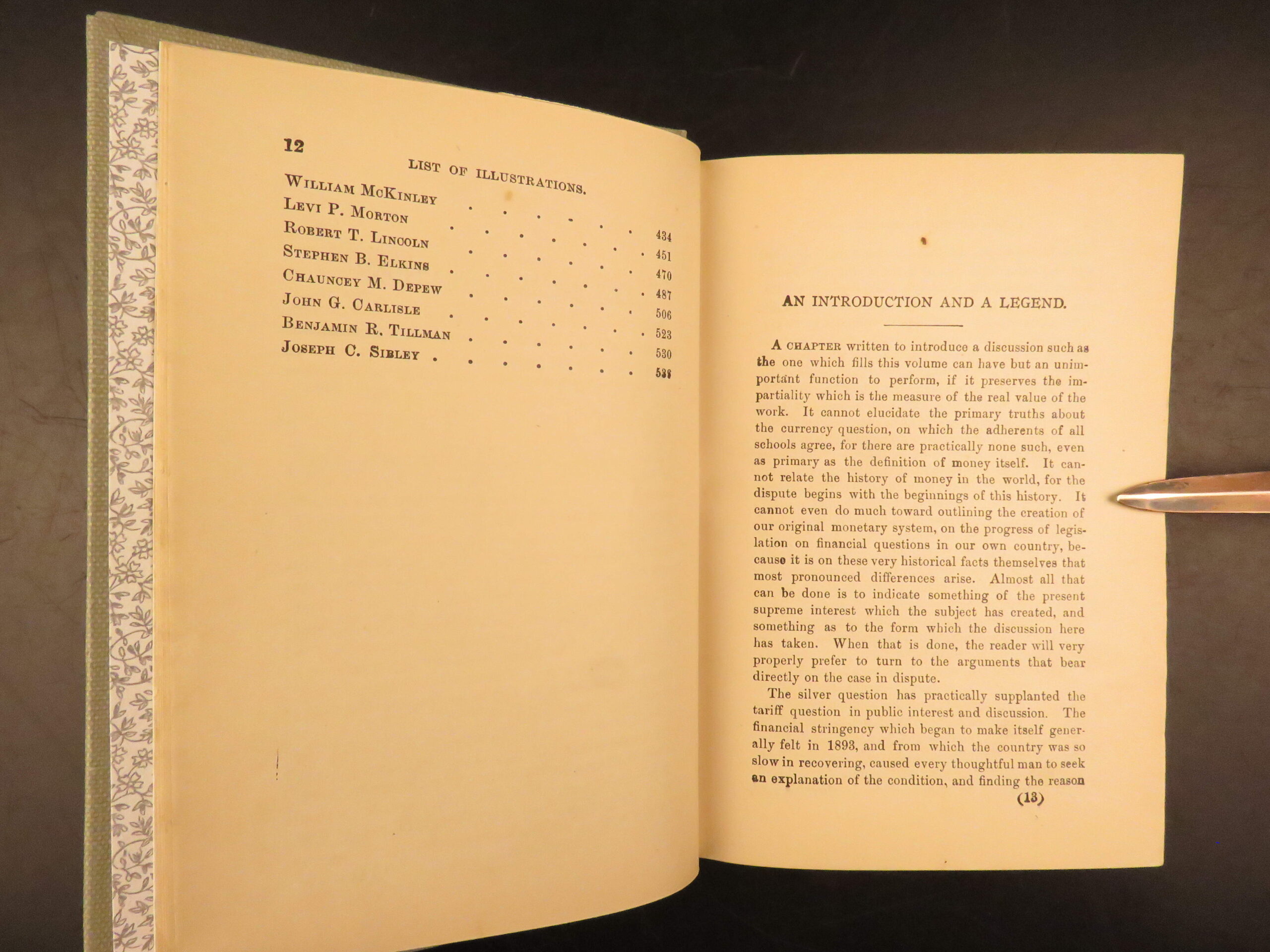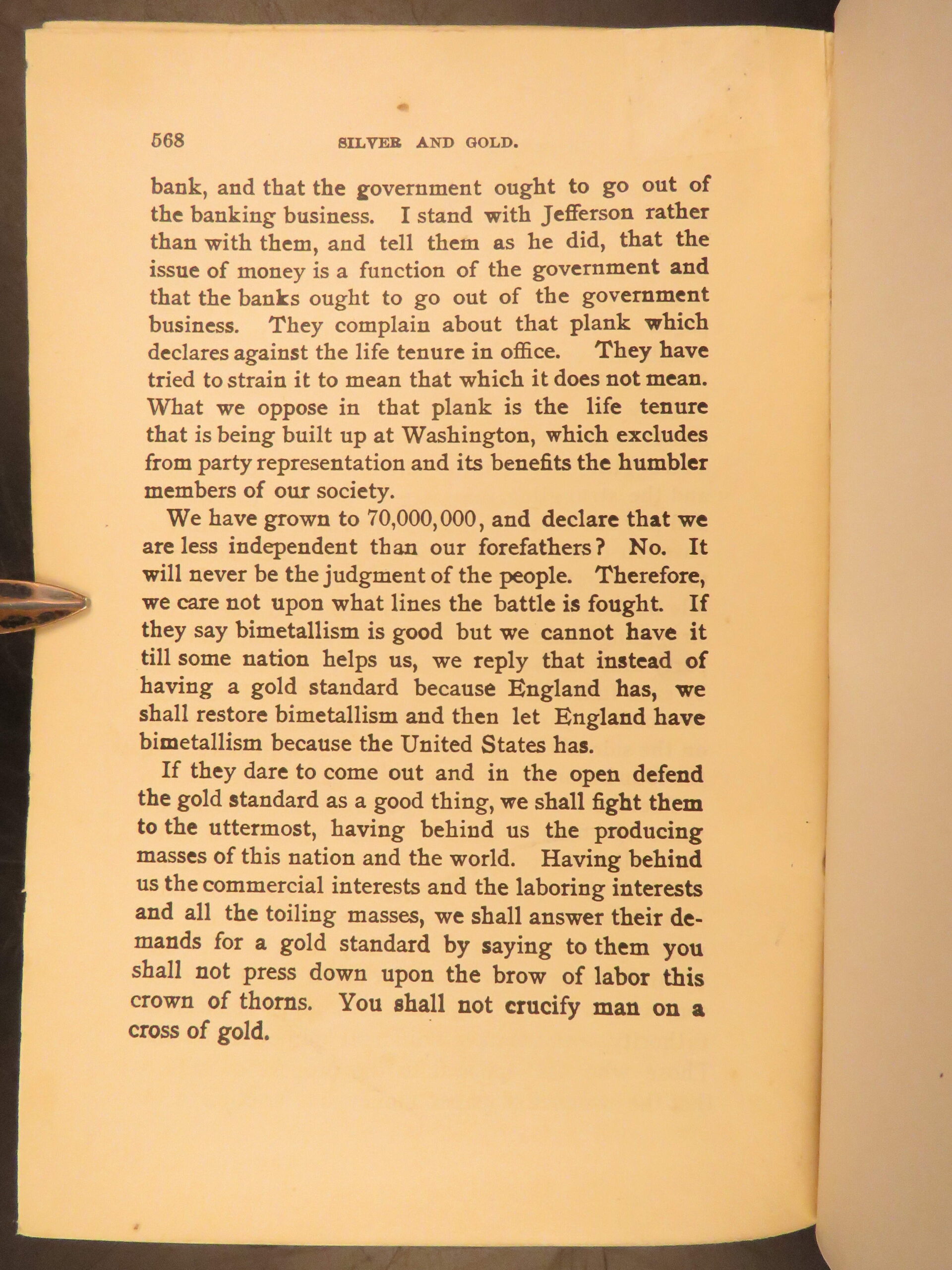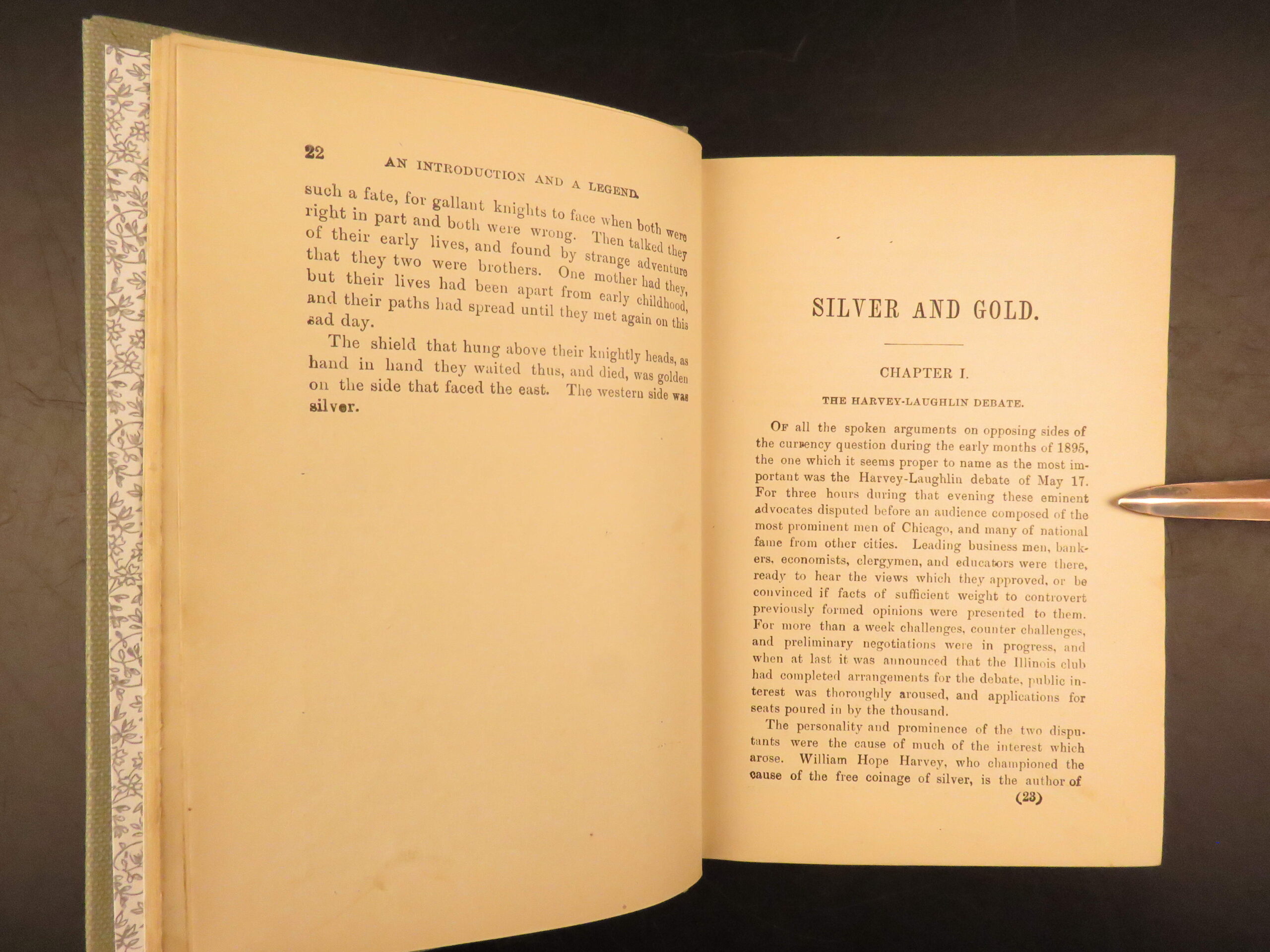 First edition of Trumbull White’s Silver and Gold, published in 1895 amid the U.S. currency debate, featuring perspectives from both camps and 32 portrait engravings.