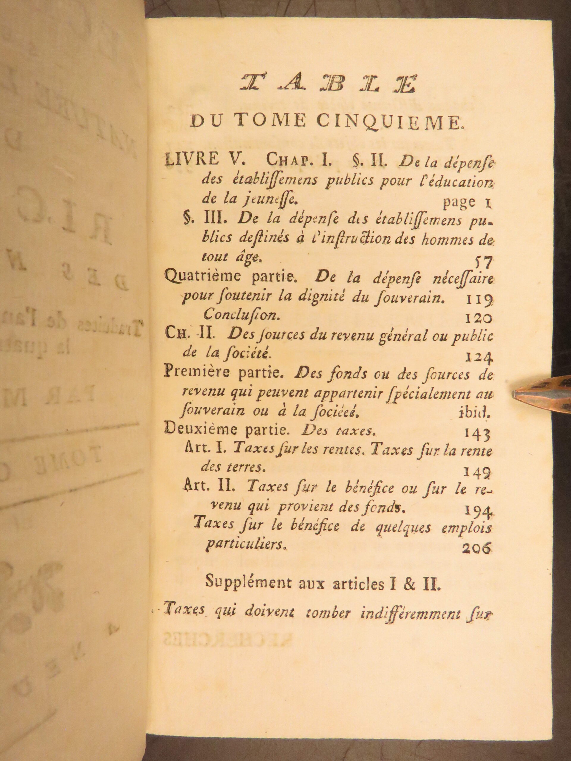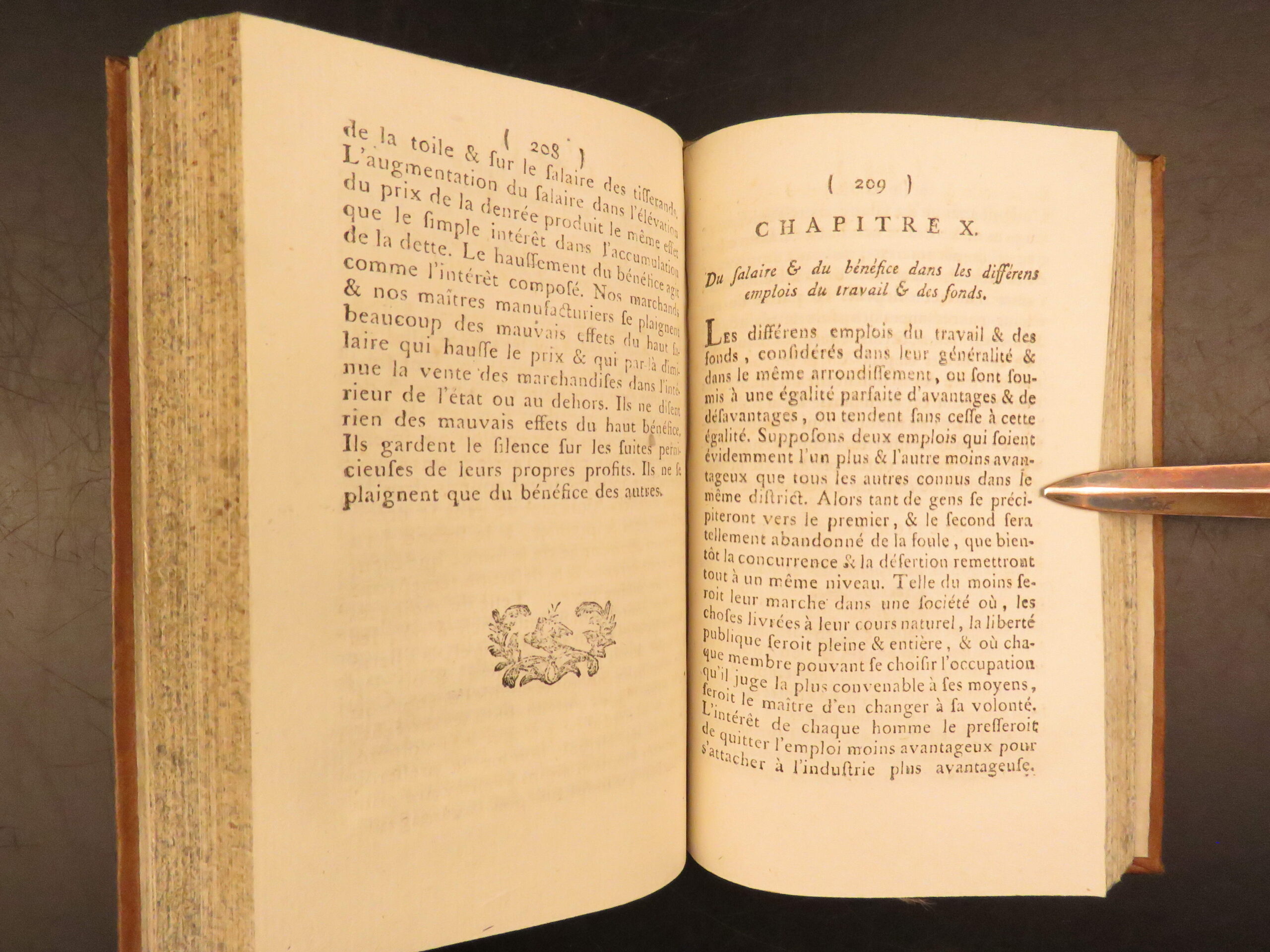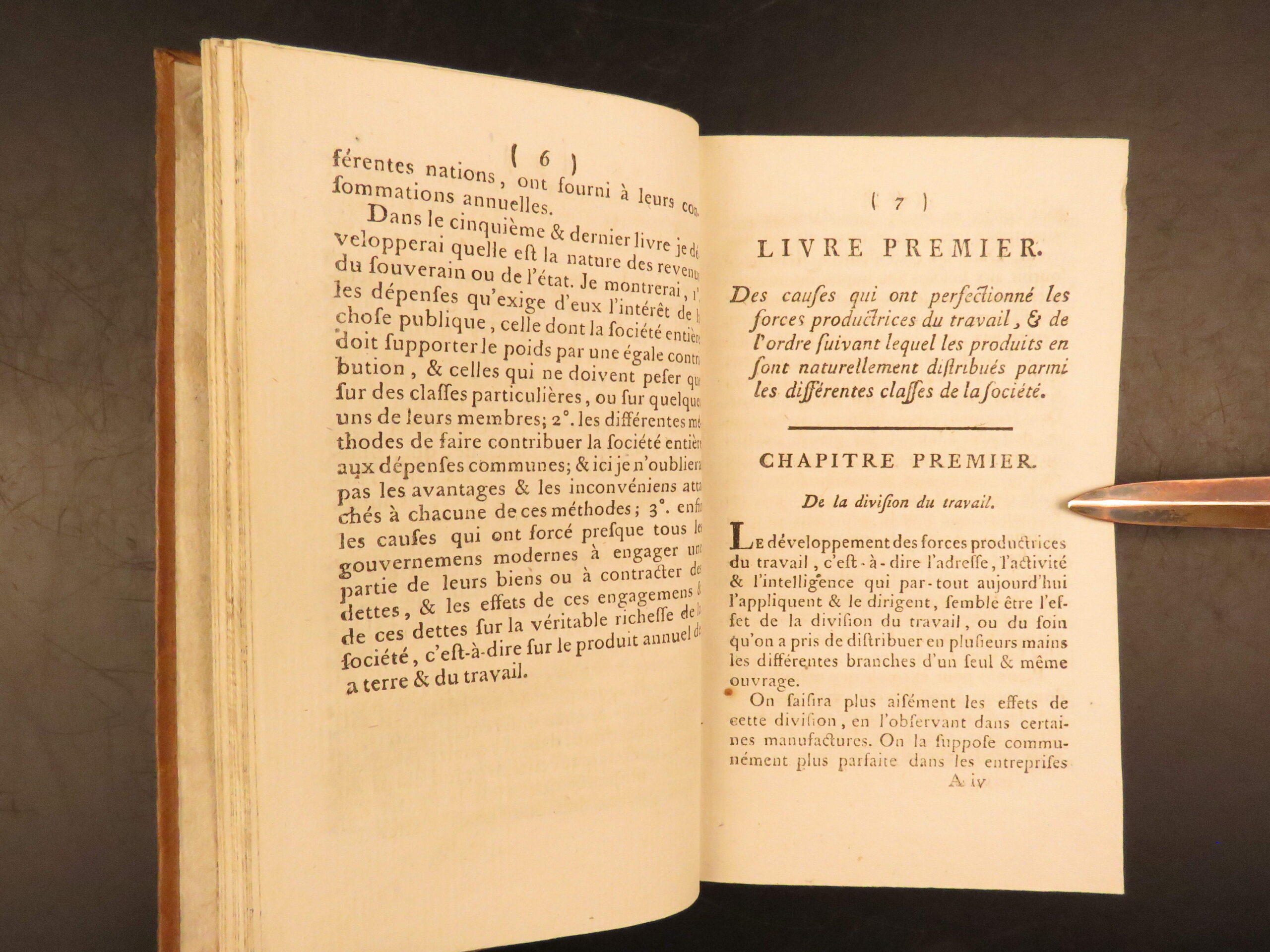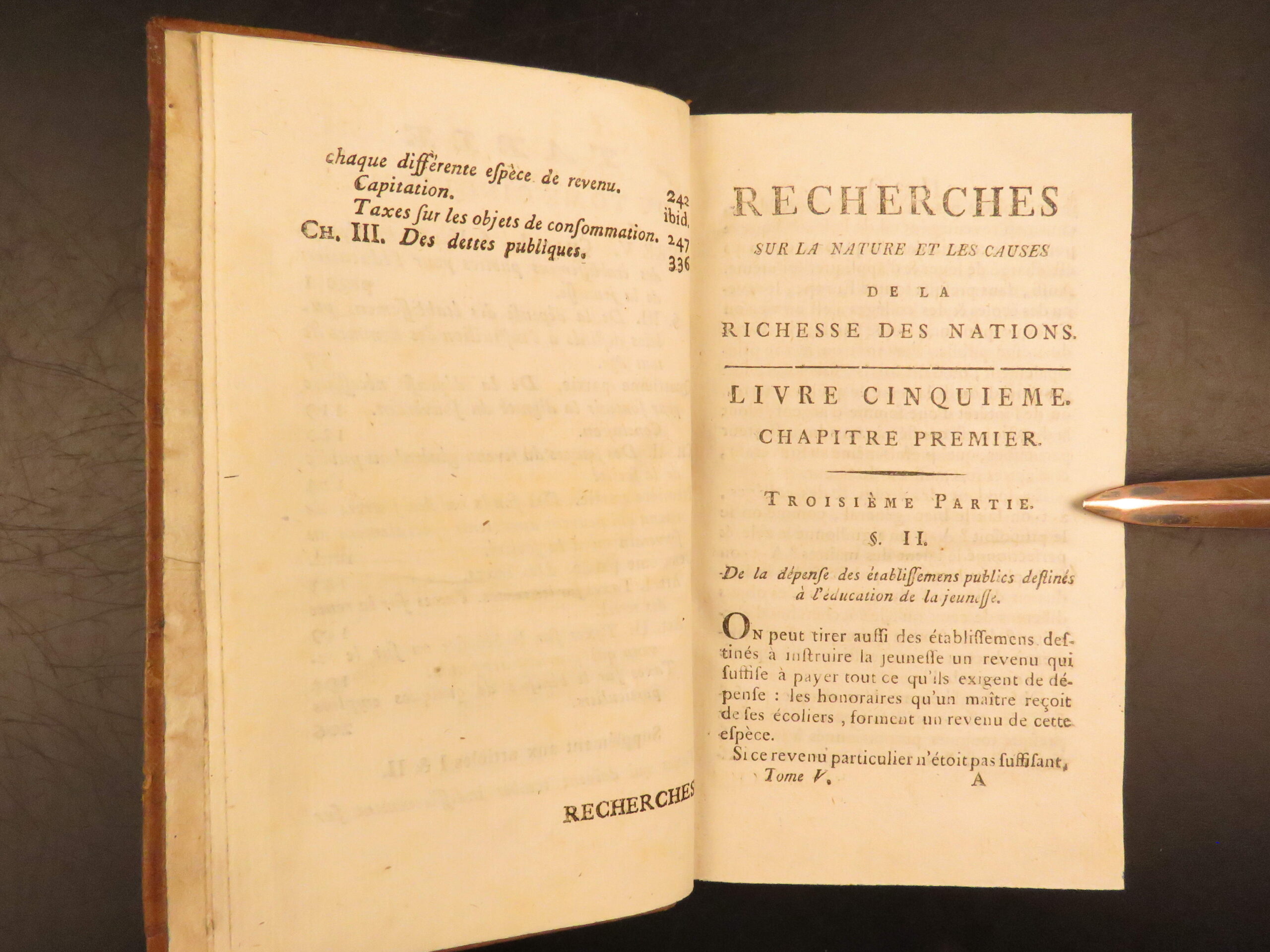 1792 Neuchatel five volume French edition of Adam Smith’s Richesse des Nations, translated by Jean-Antoine Roucher, a key Enlightenment printing of early economic theory.