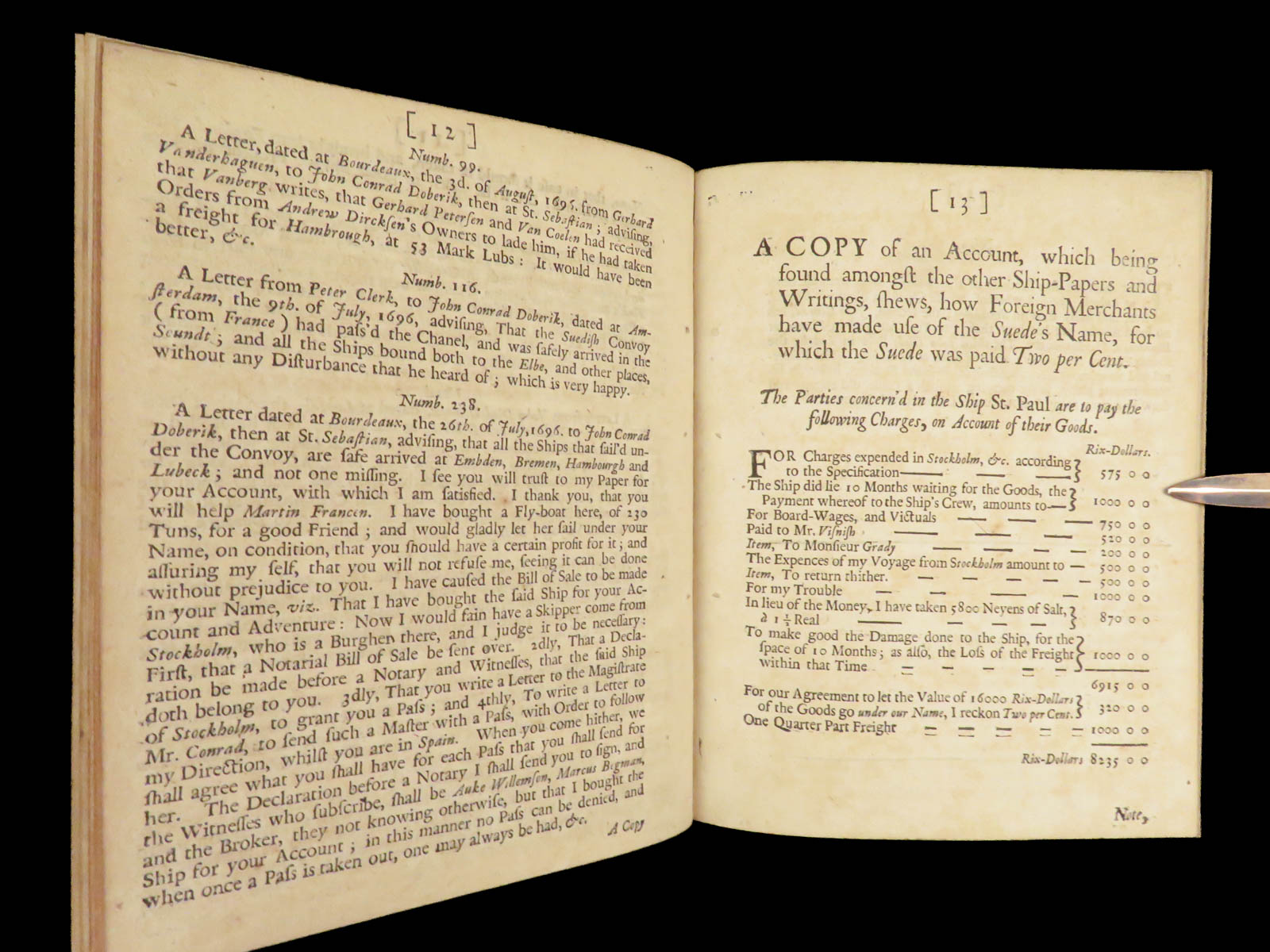 Account of Suedish Merchant Ships – 1697 | First Edition Pamphlet, French Trade