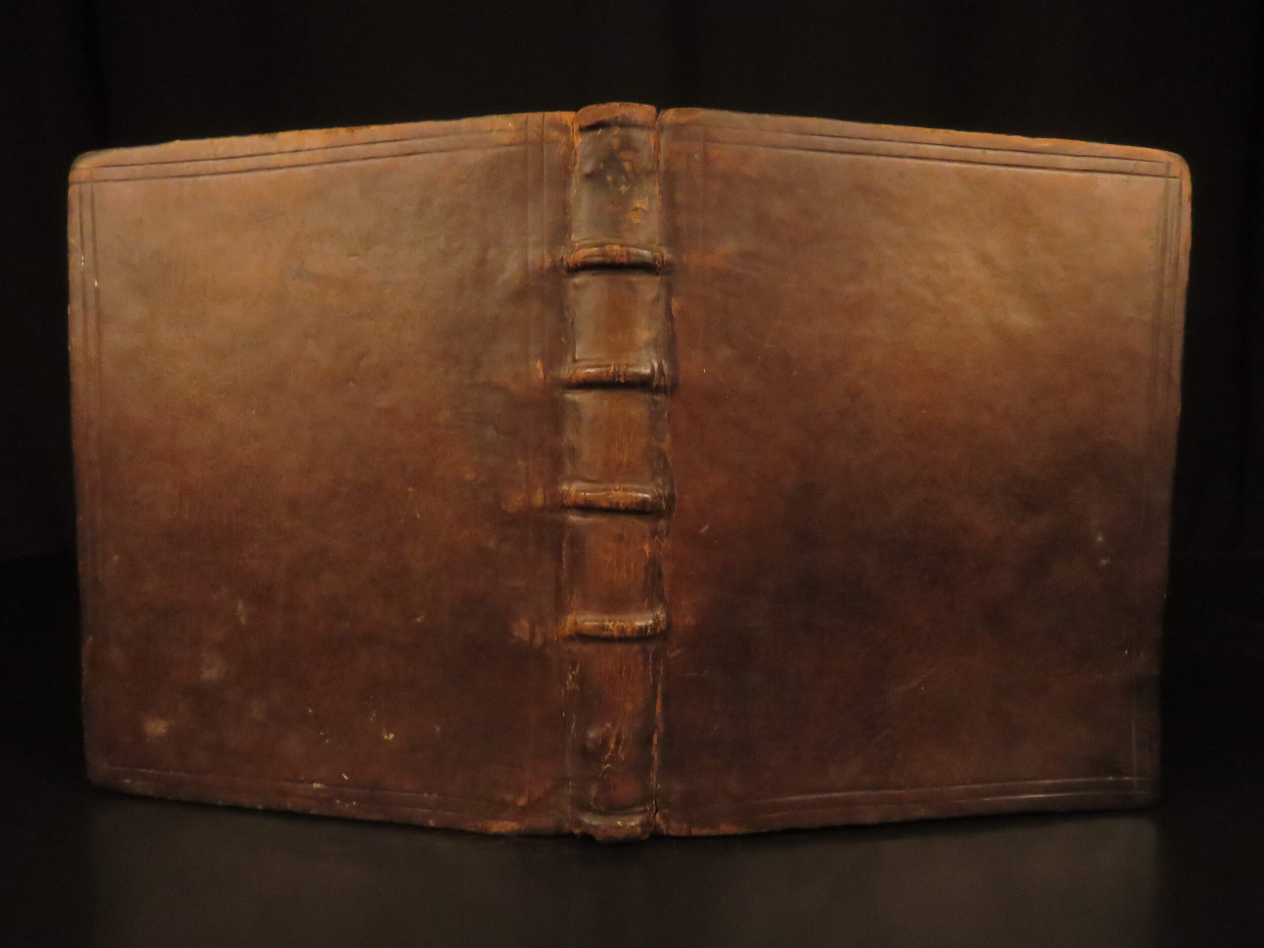 Good. Bound in full leather with a tight, secure binding. Pages show noticeable age staining throughout. Preliminary leaves exhibit marginal loss, though the text remains entirely intact. No restorations noted.