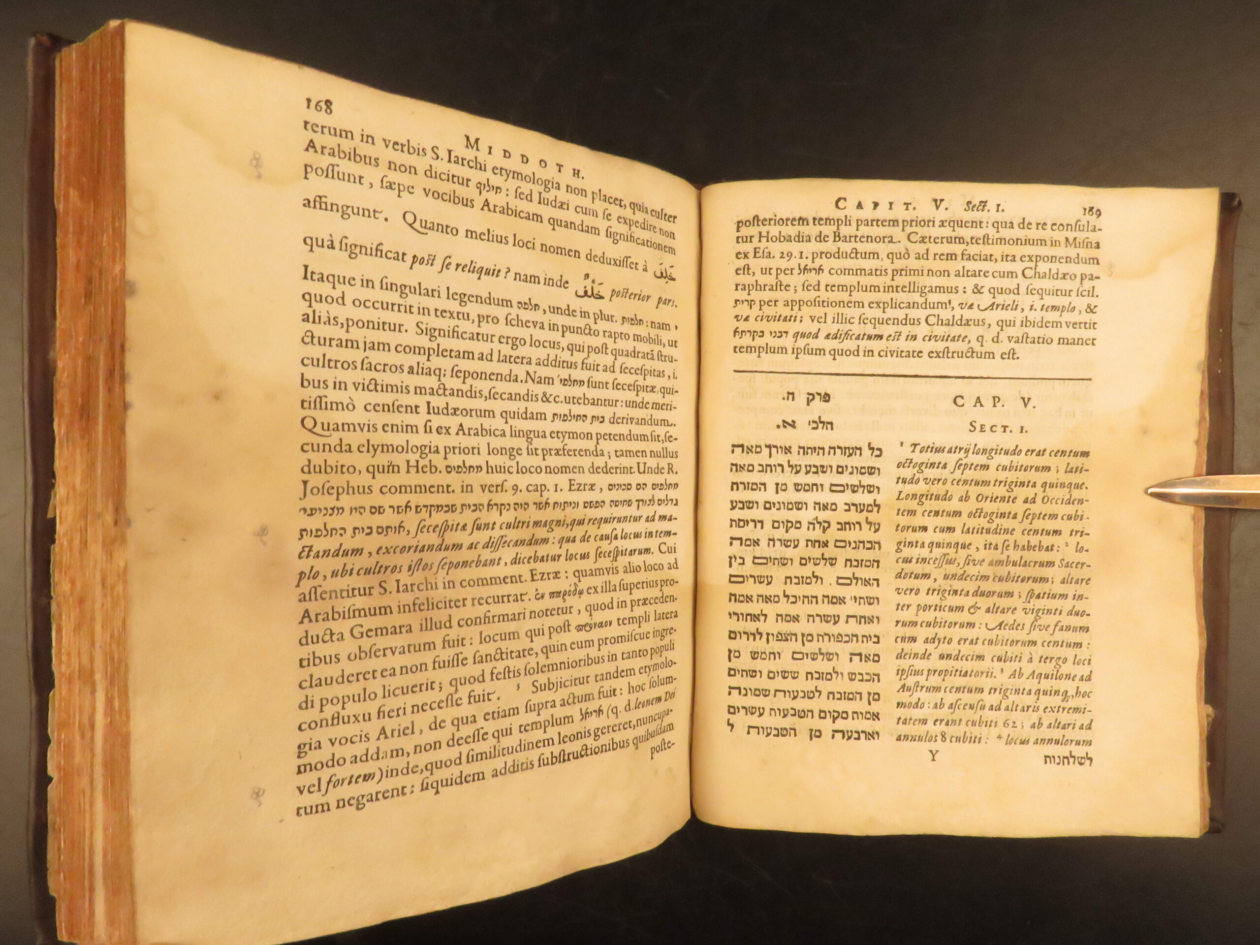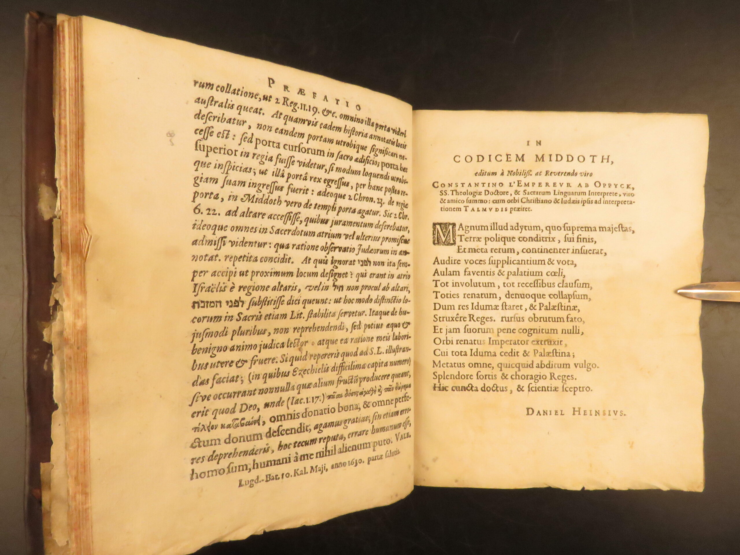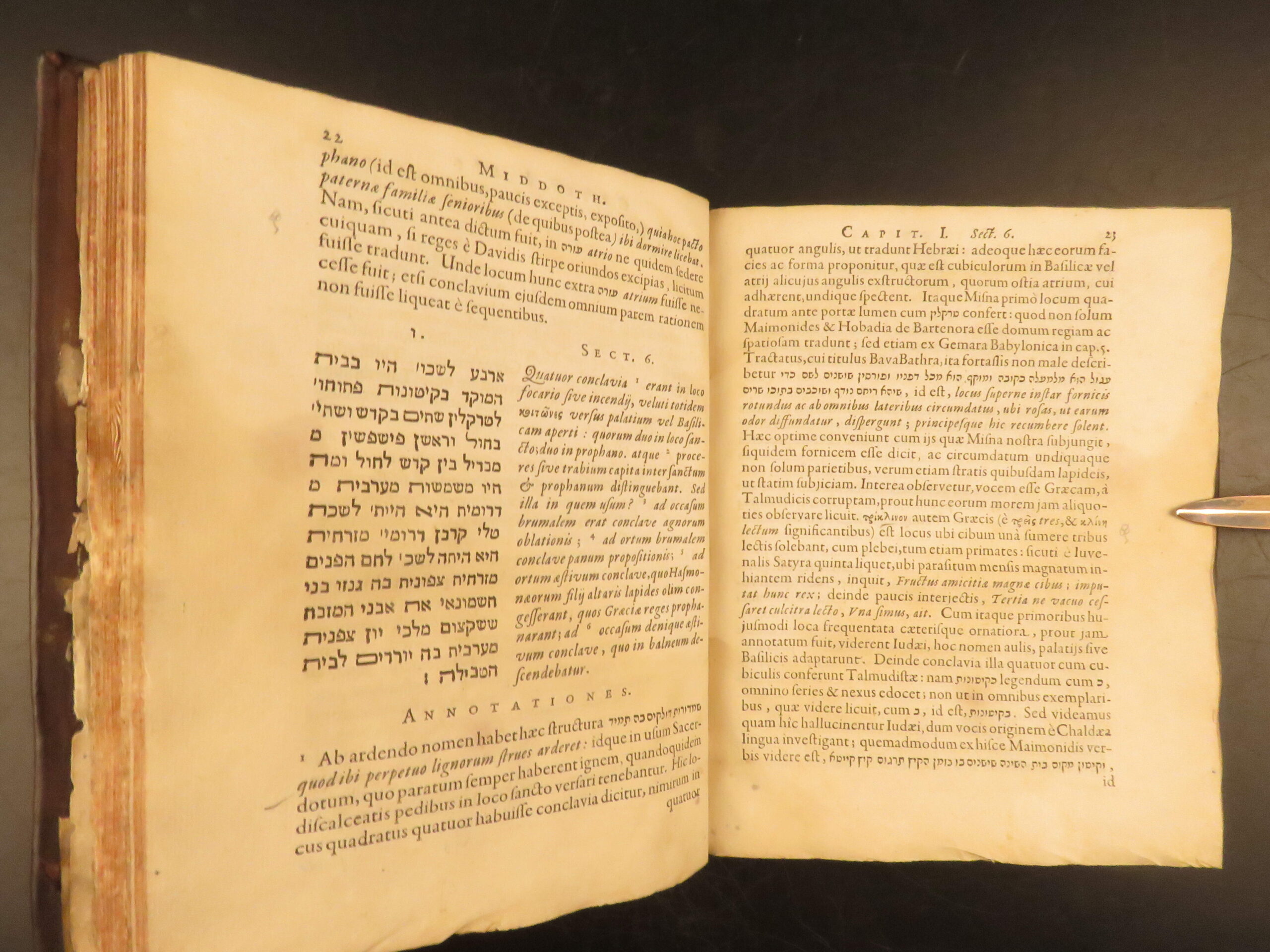 L’Empereur’s 1630 Latin-Hebrew edition of the Mishnah tractate Middot, printed by Elzevir in Leiden, highlights early Christian Hebraist scholarship and remains a key text in the study of Temple architecture.