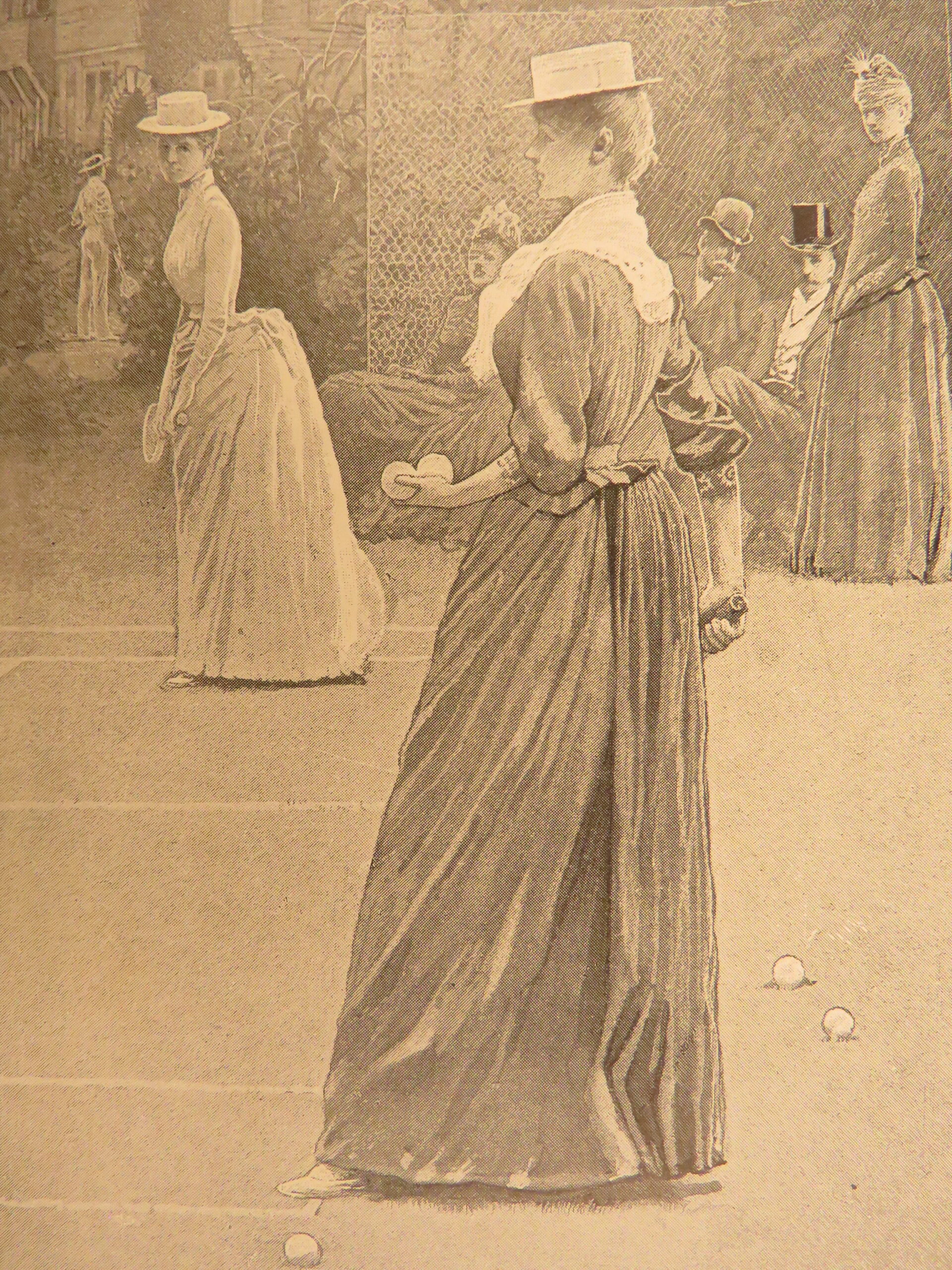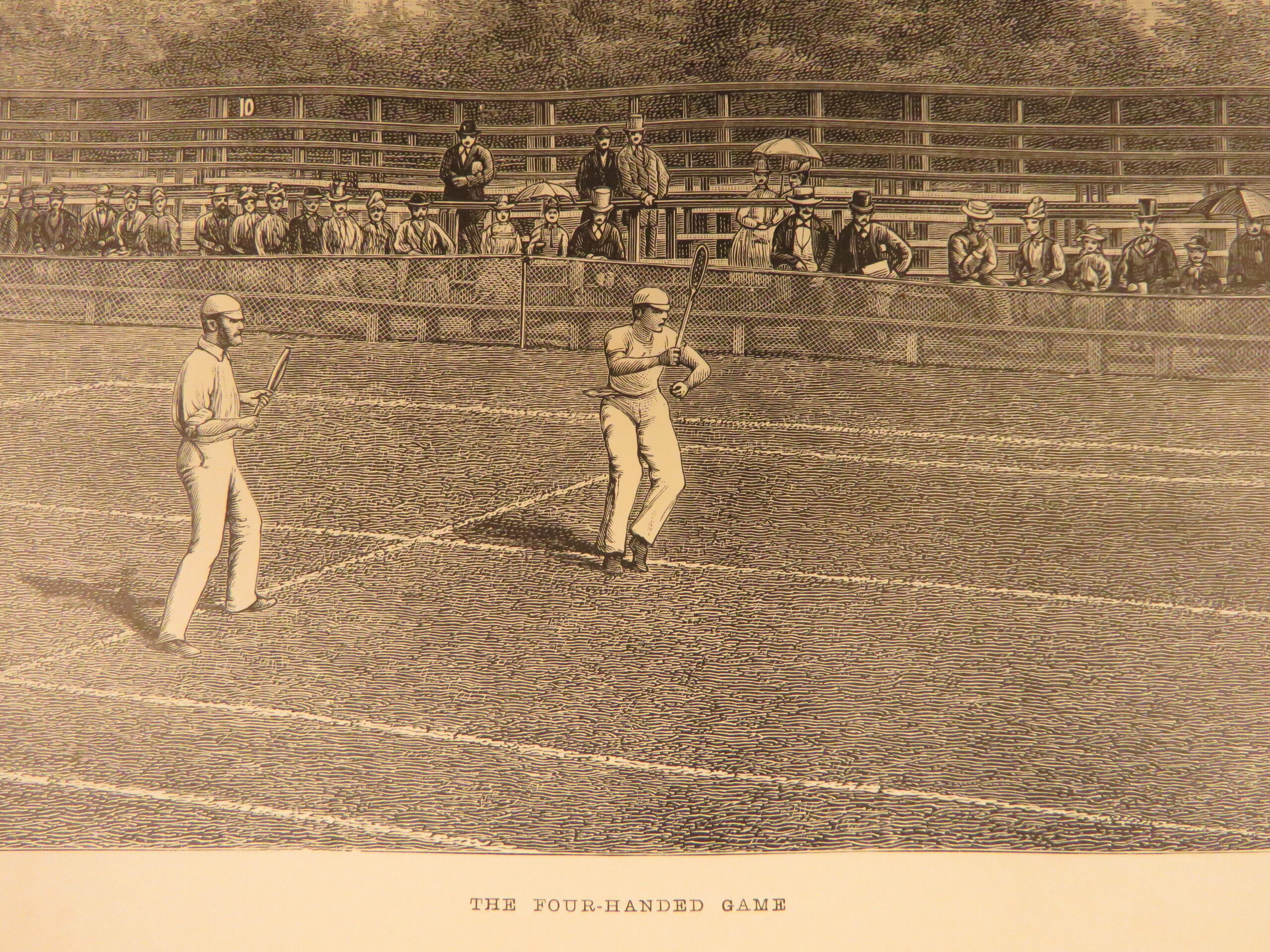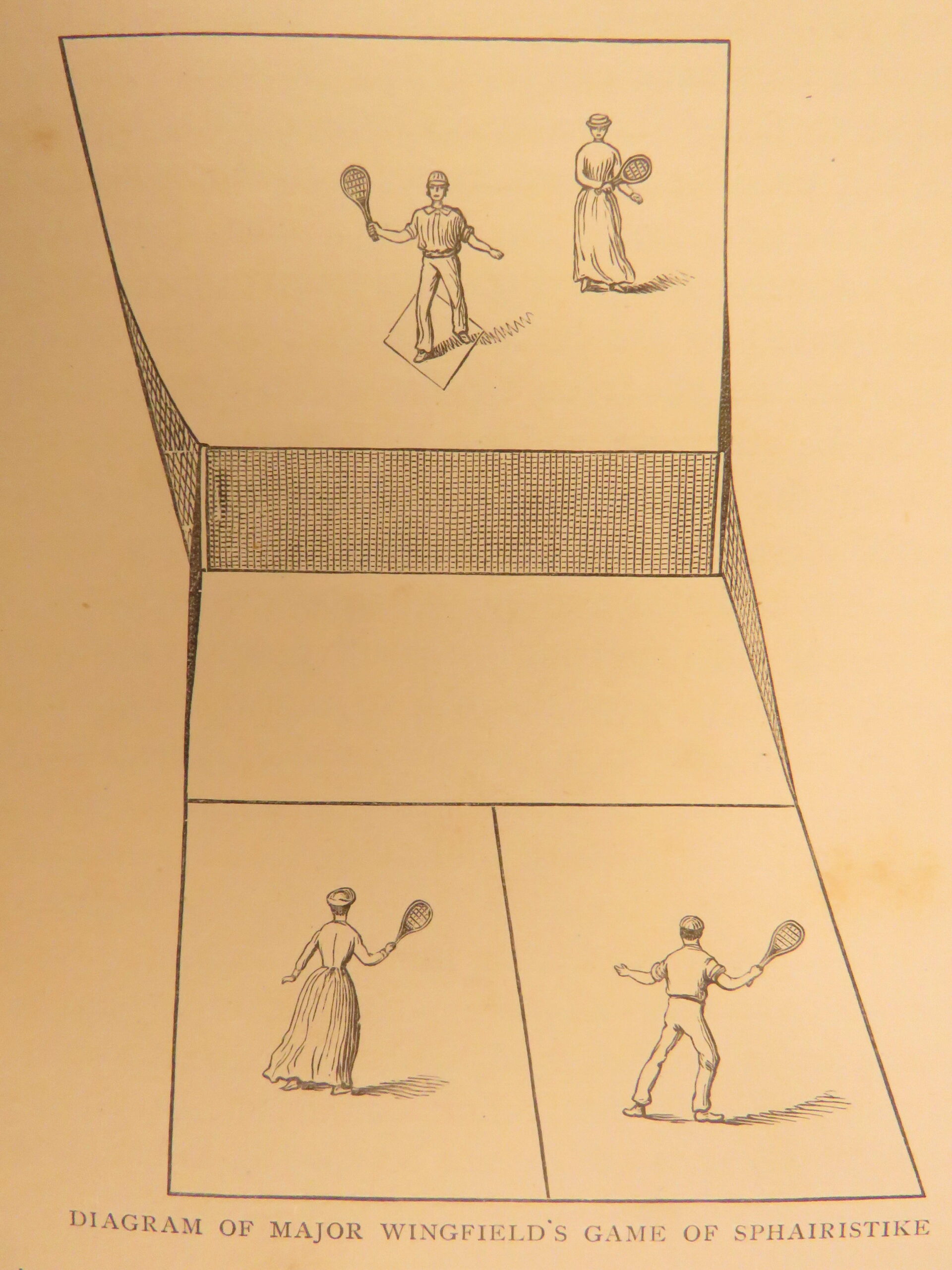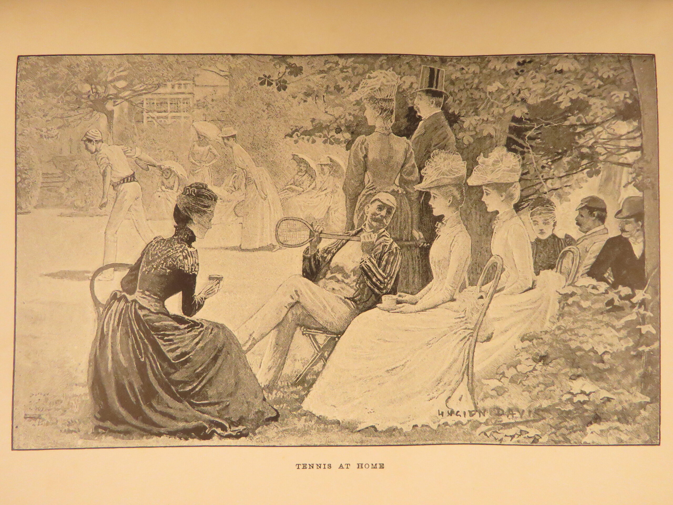 Tennis is a late 19th-century collection of four works on popular yard games and sports. This 1890 work includes descriptions of tennis, lawn tennis, rackets, and fives – games that were widely played in 19th-century England, especially among the higher class. Author J.M. Heathcote includes numerous in-text illustrations depicting aspects of the game – positions, form, equipment, etc.