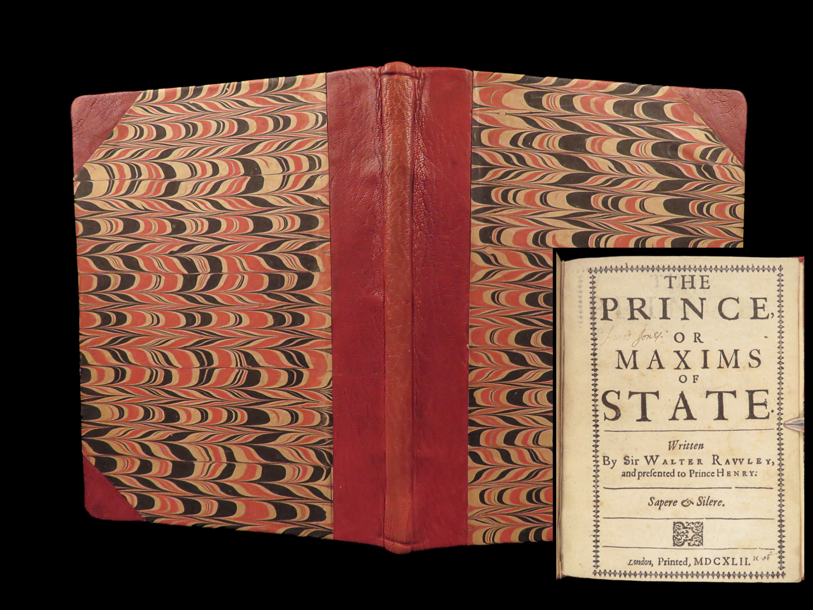 Rare first edition of Walter Raleigh’s The Prince, printed in 1642 in London, focused on moral monarchy, Christian leadership, and warnings against tyranny during the early Stuart period.