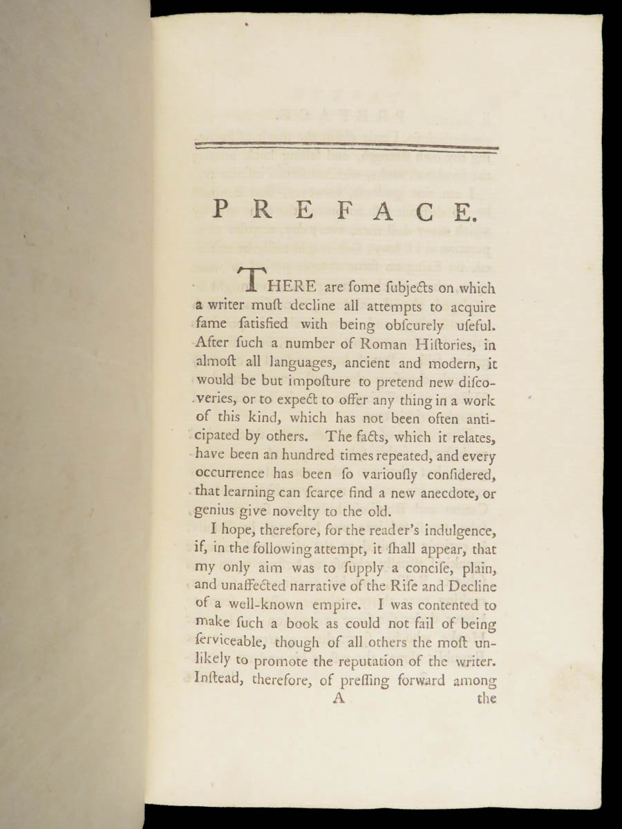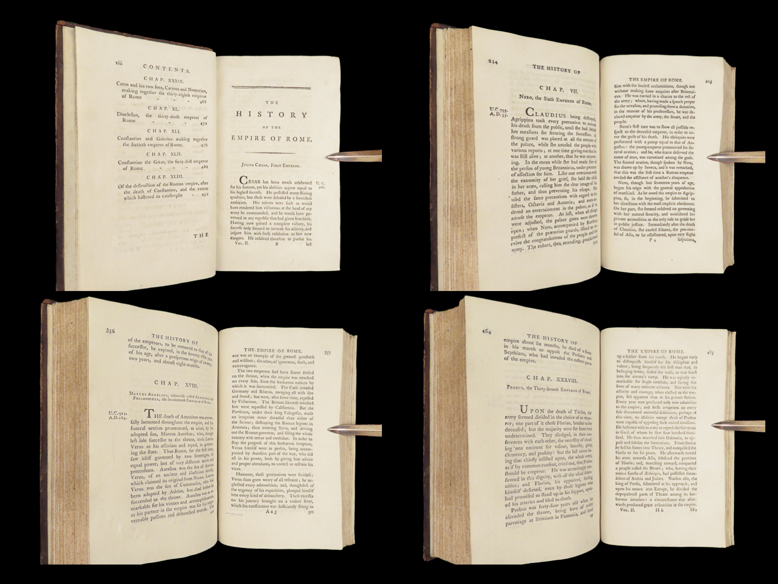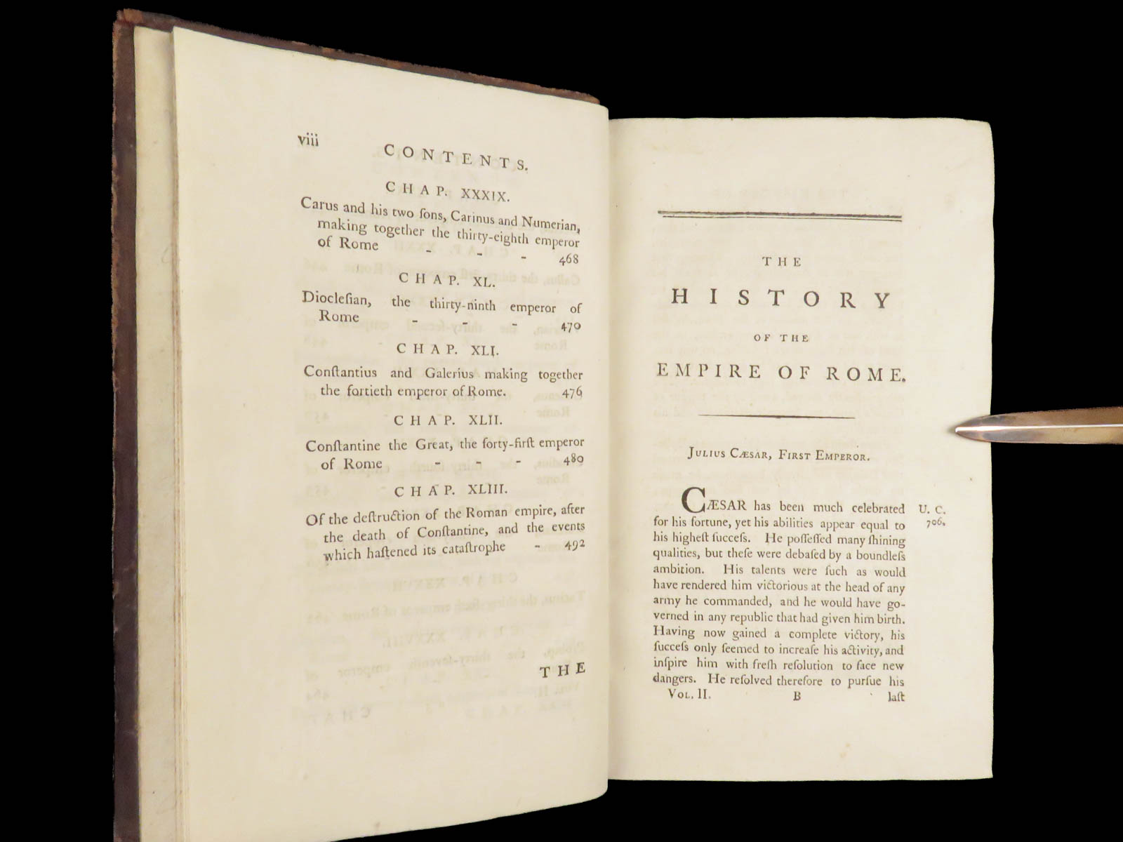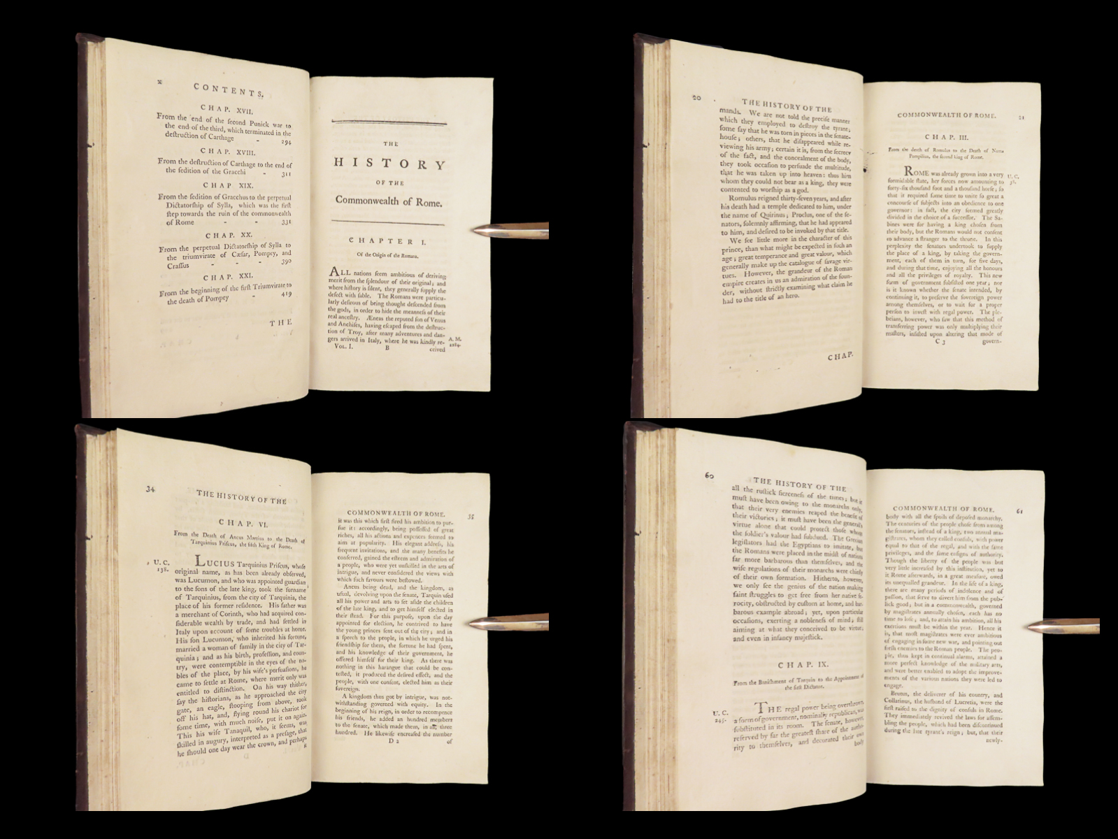Oliver Goldsmith’s poetry was popular throughout the 19th- and early 20th-centuries. One of his lesser-known historical works was The Roman History, a historical treatise on the foundation of Rome and its rise to world power. Like many other histories of Rome, Goldsmith’s covers the lives and reigns of Julius Caesar, Augustus Caesar, Tiberius, Marc Antony, and Constantine.