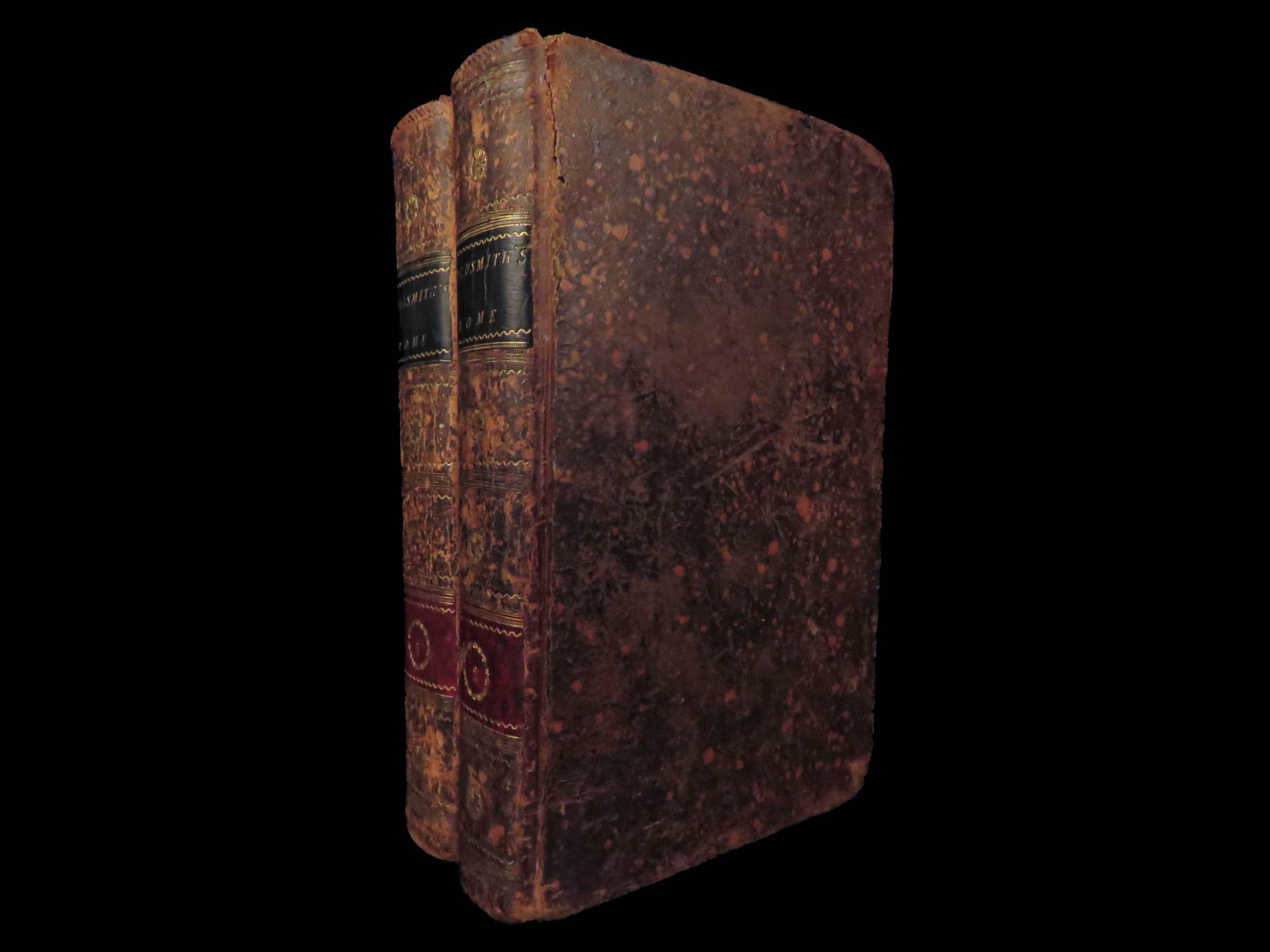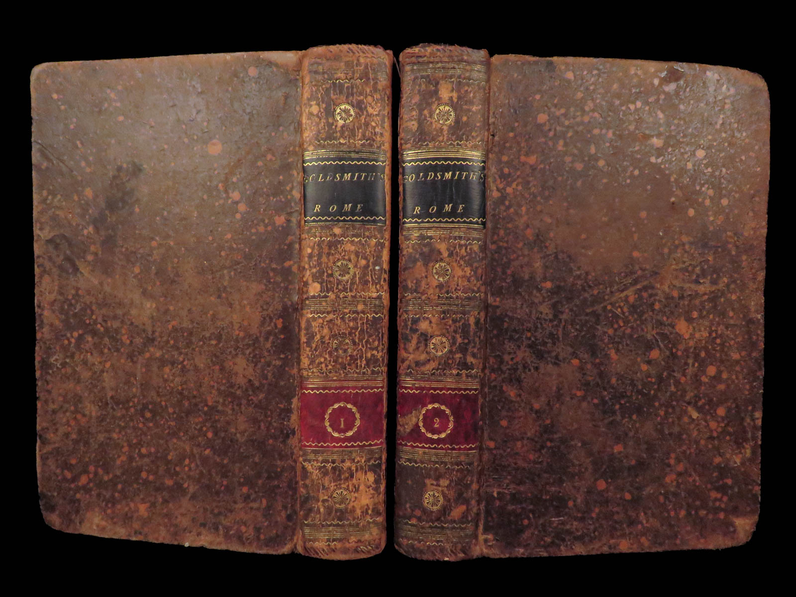 1793 London New Edition of Oliver Goldsmith’s Roman History, a complete two-volume octavo set tracing Rome’s rise and fall, bound in full leather with period reader annotations.