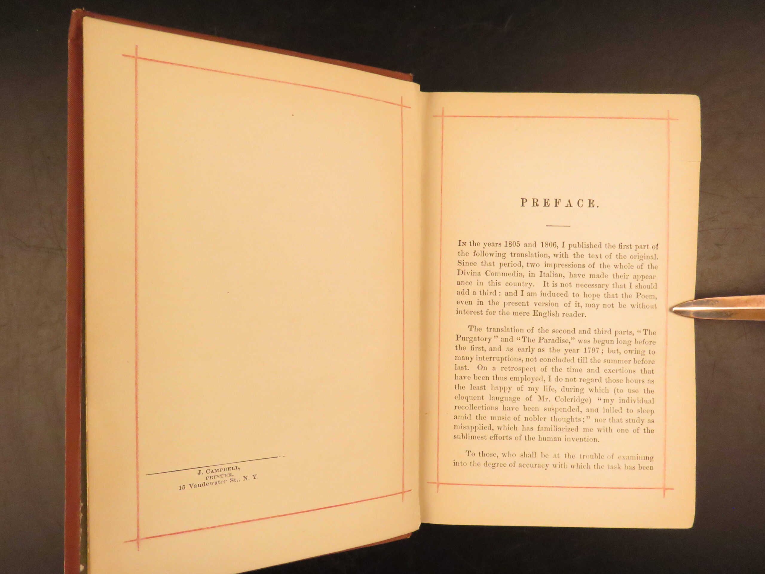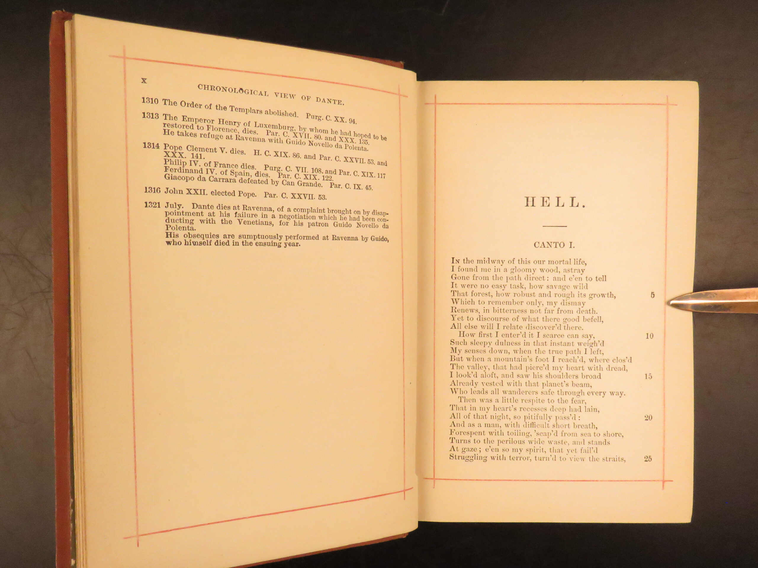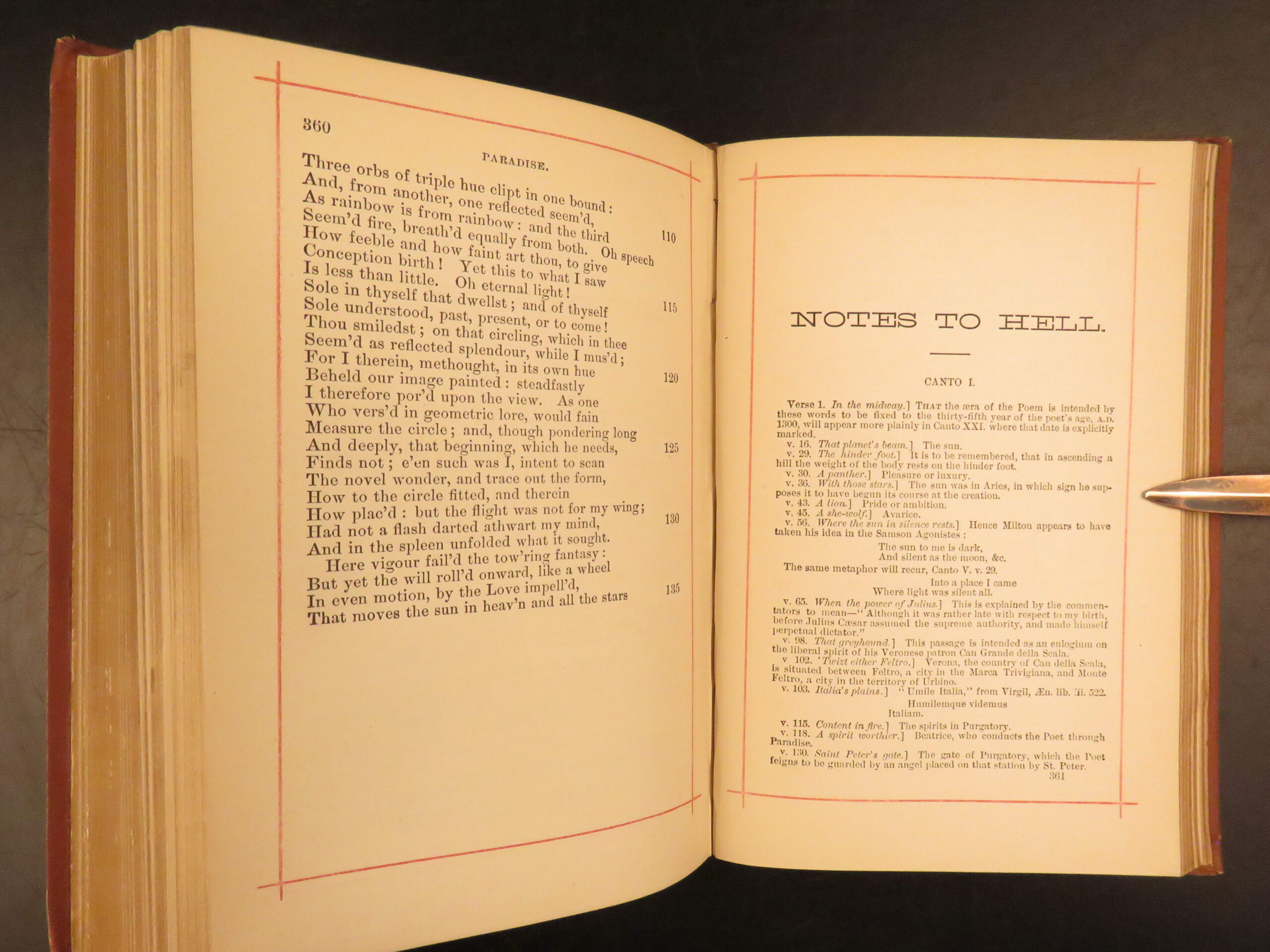 This 1881 edition of Dante’s Divine Comedy, English translation by H F Cary, published by T. Y. Crowell in Boston with gilt-decoration binding.