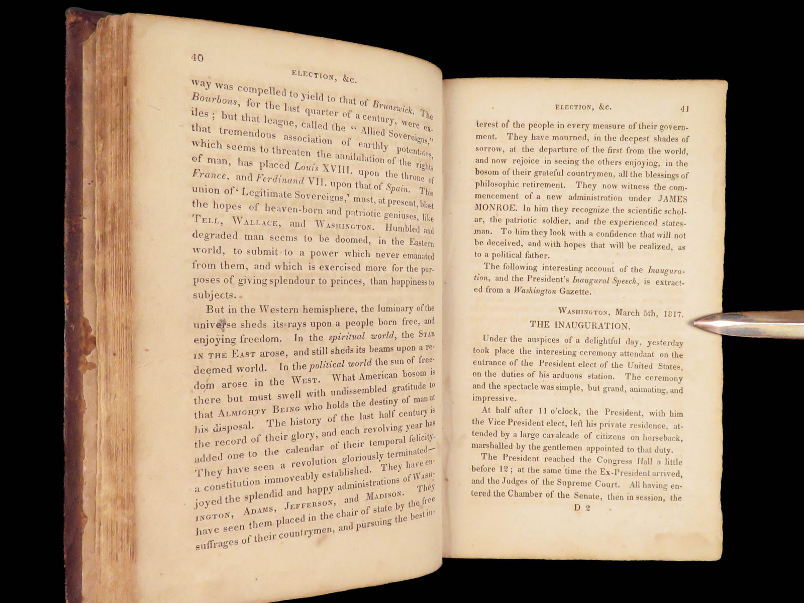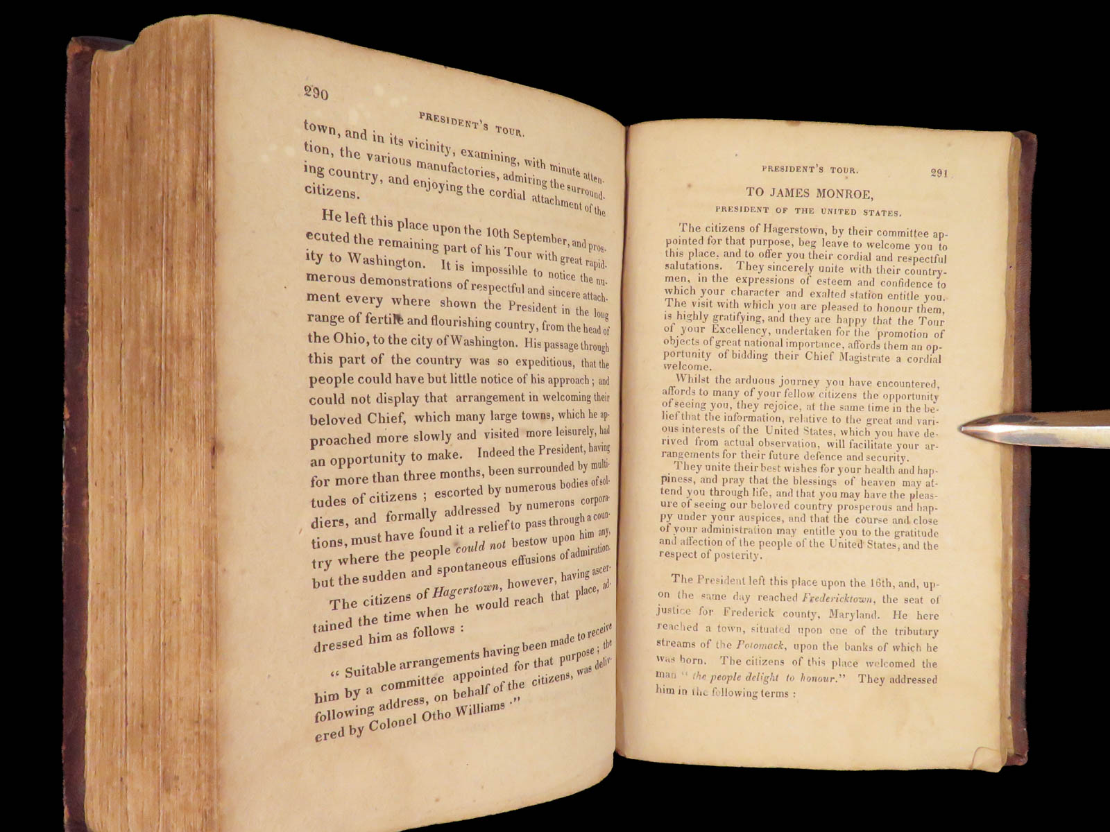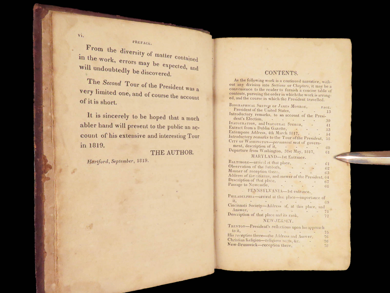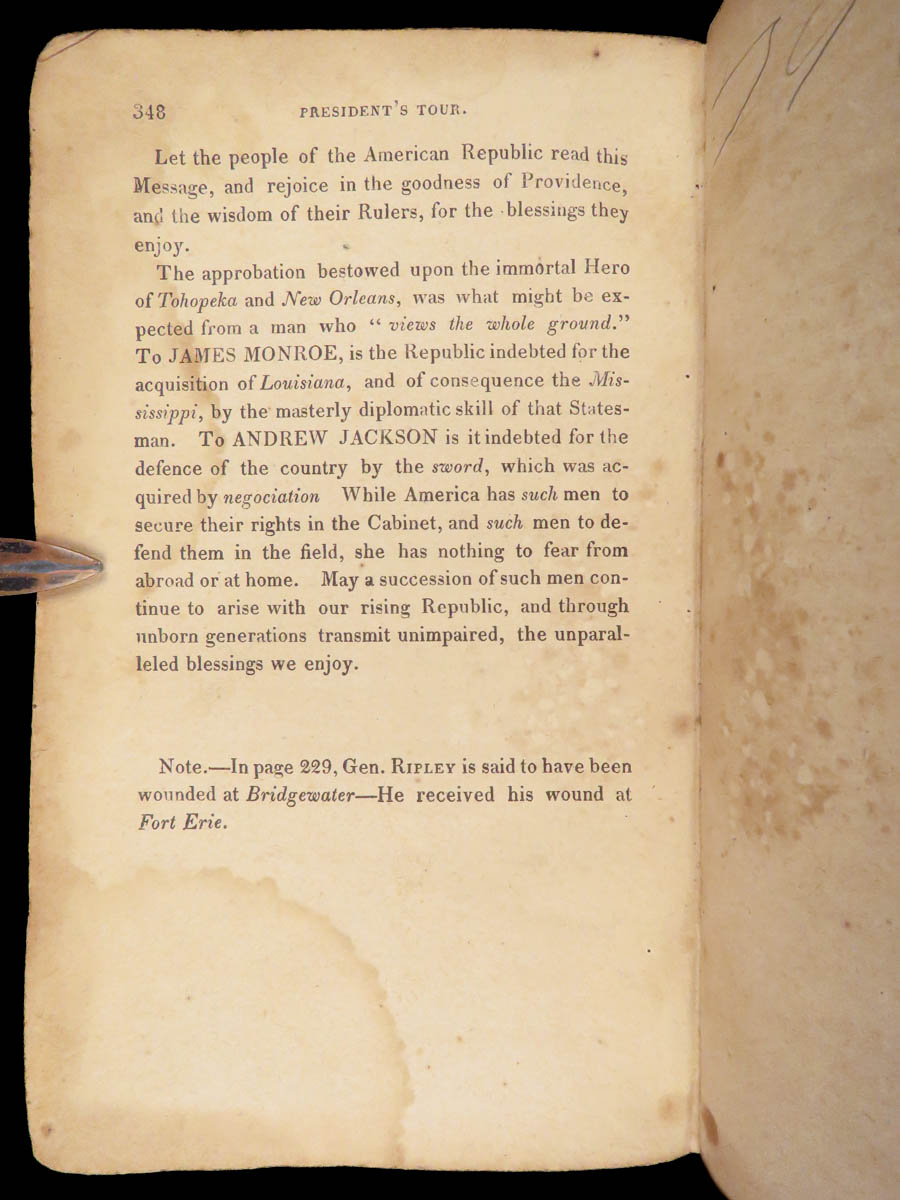 Samuel Waldo’s The Tour of James Monroe, President of the United States, in the Year 1817 (Hartford: Silas Andrus, 1819) recounts Monroe’s journey through the northern states during the early Era of Good Feelings.