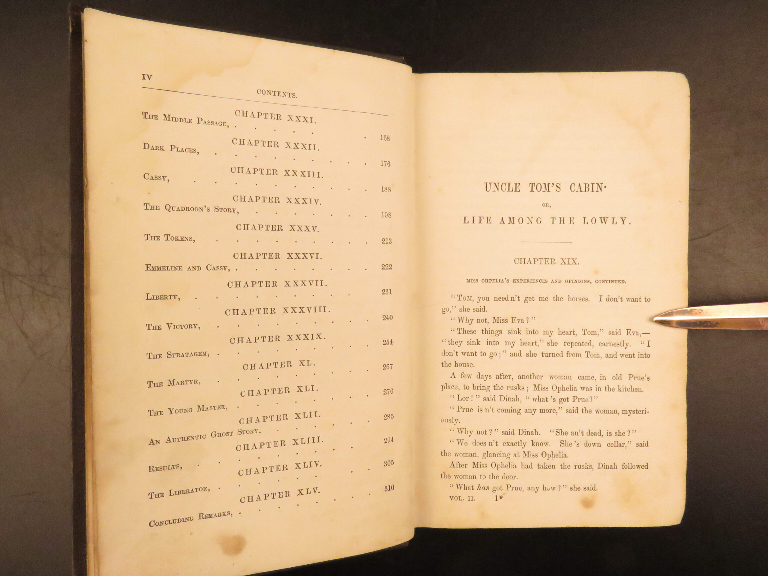 This mixed set features one of the earliest printings of Uncle Tom, including the first volume is from the 10th-thousand, the second volume from the 30th – both very early volumes from one of the most iconic pieces of abolitionist literature.