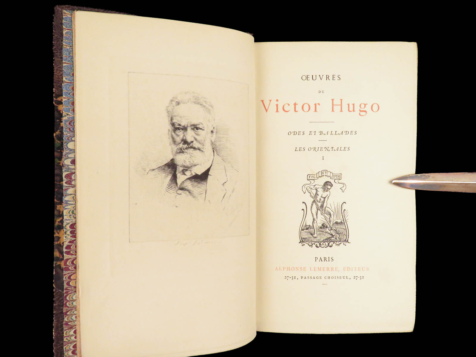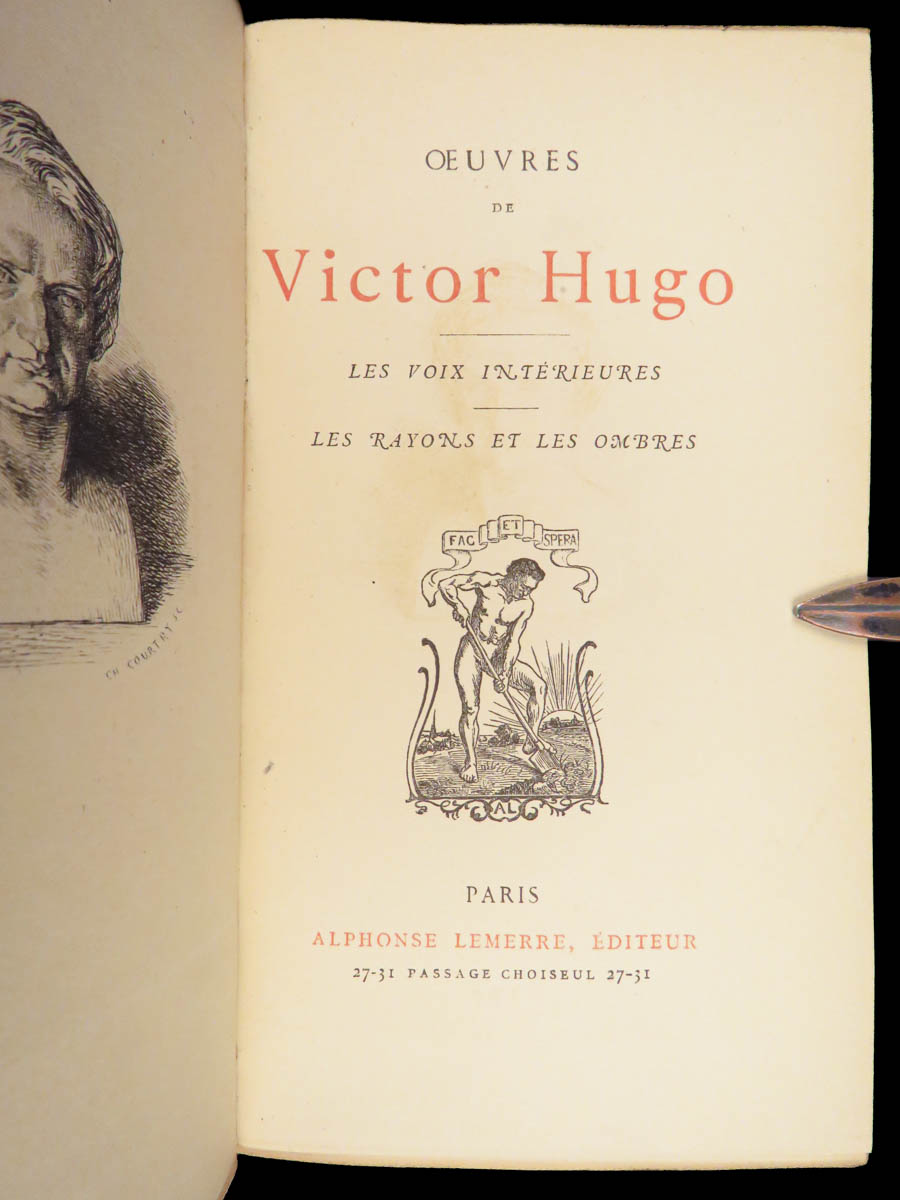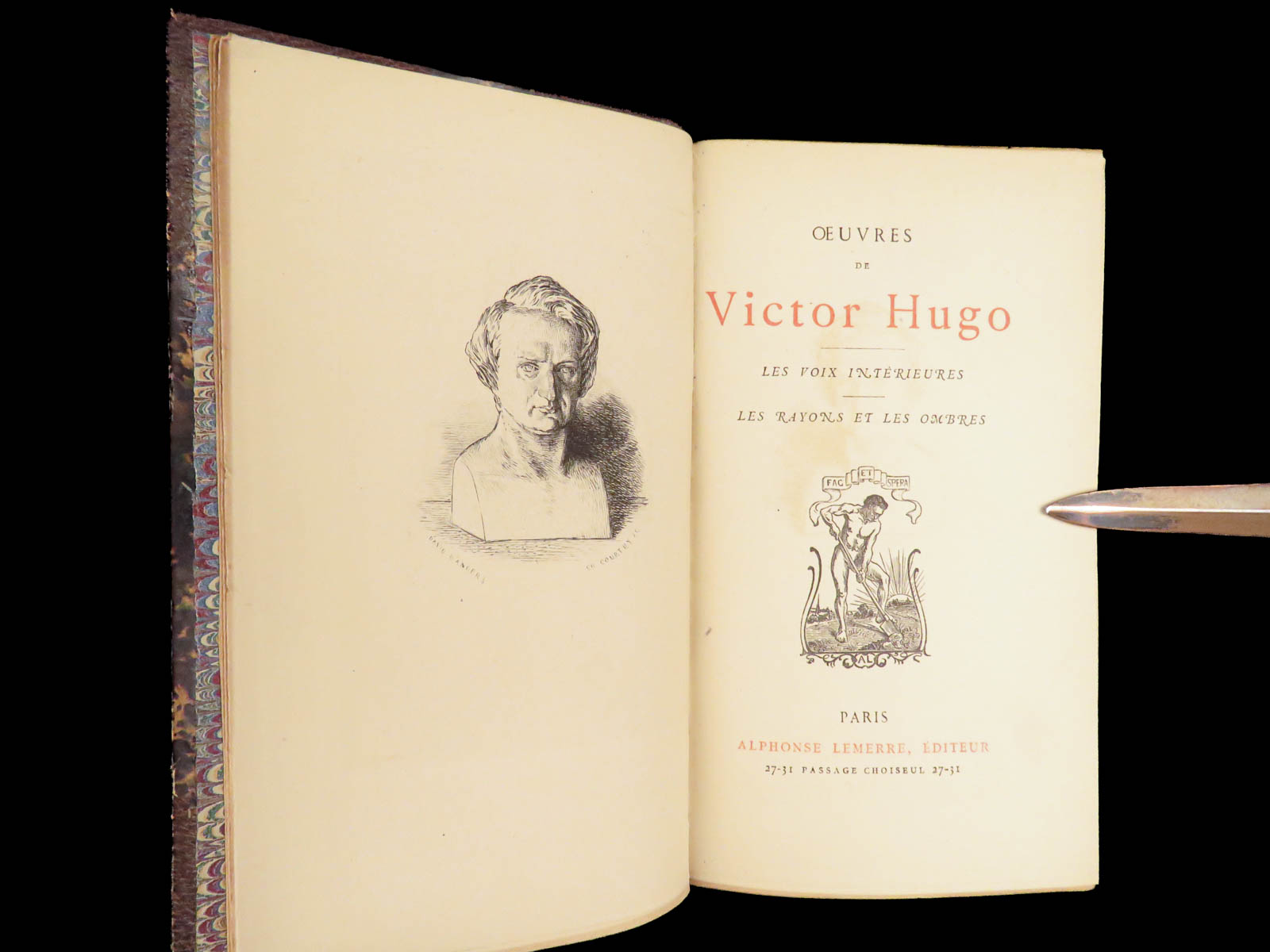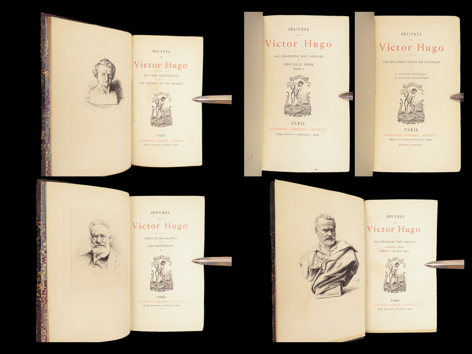 This set of Oeuvres de Victor Hugo presents sixteen volumes of the Romantic era author’s poetry and political verse, much of which was composed while Hugo was in political exile under Napoleon III, including La Légende des Siècles and Les Contemplations.