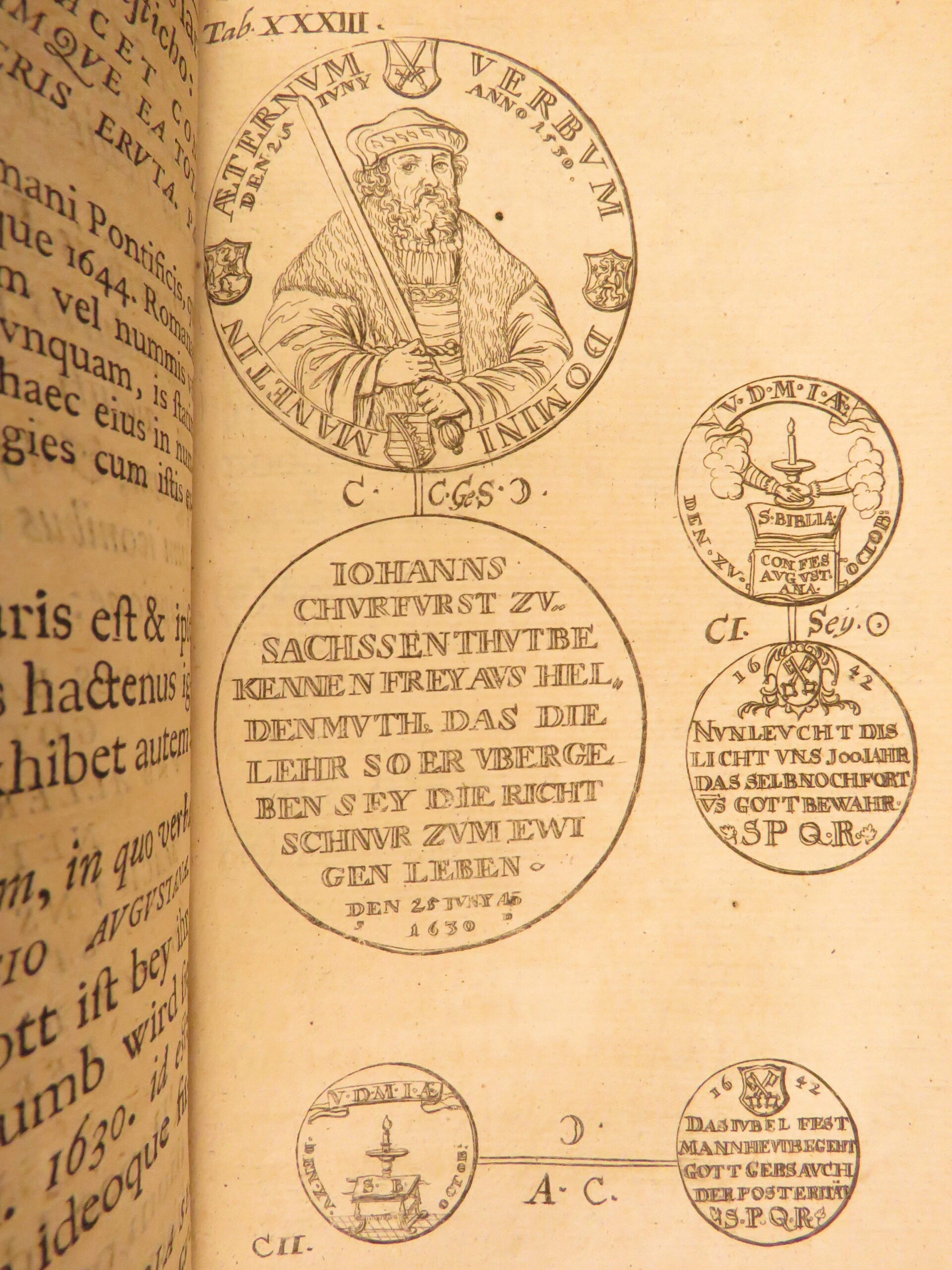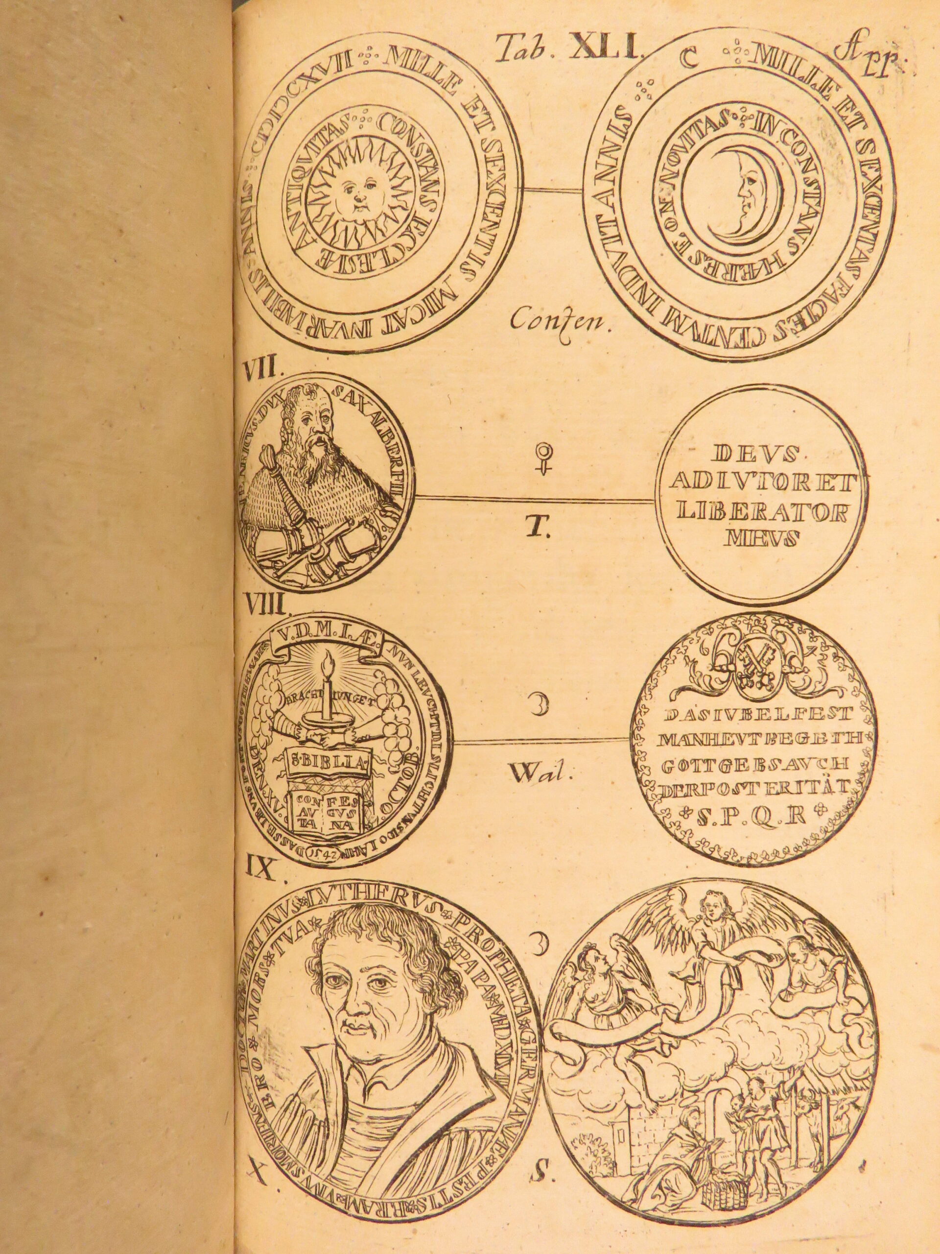 Vita D. Martini Lutheri Et Successuum Evangelicae Reformationis Historia Nummi is a fascinating 1699 survey of the life of Martin Luther by Christian Juncker. Juncker, a Saxon historian, had a profound interest in both numismatics and the Protestant Reformation and decided to produce a book that covered both. This book describes the life of Luther through medals and coins. In fact, this book has dozens of full-page engravings including portraits and seemingly countless engraved coins throughout.