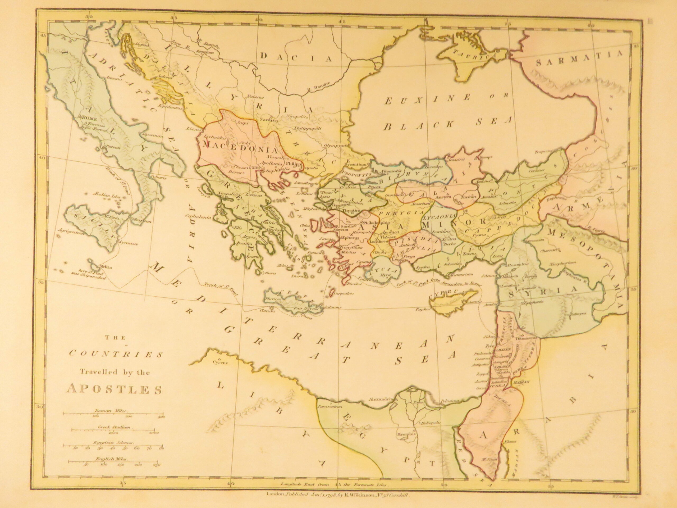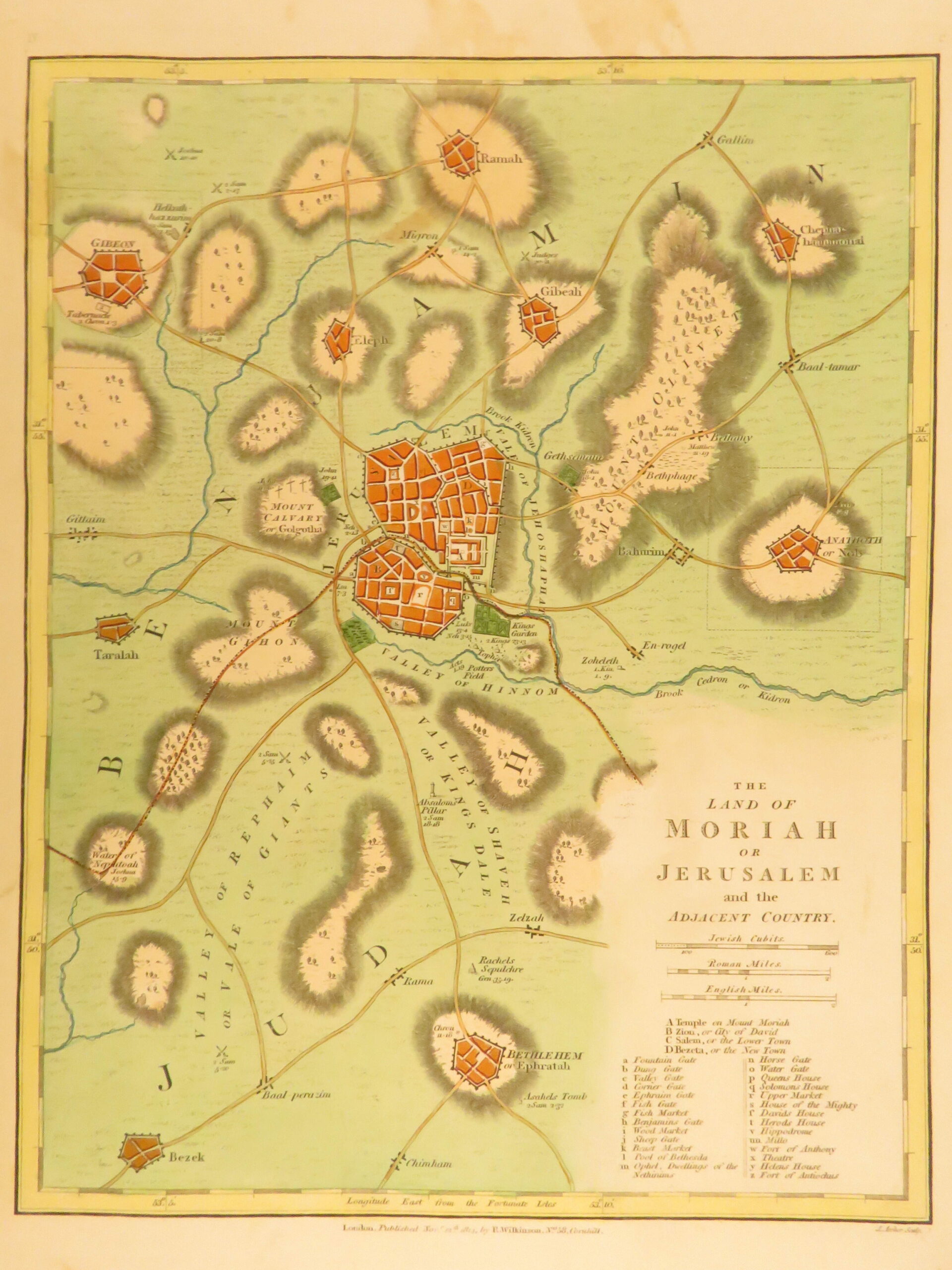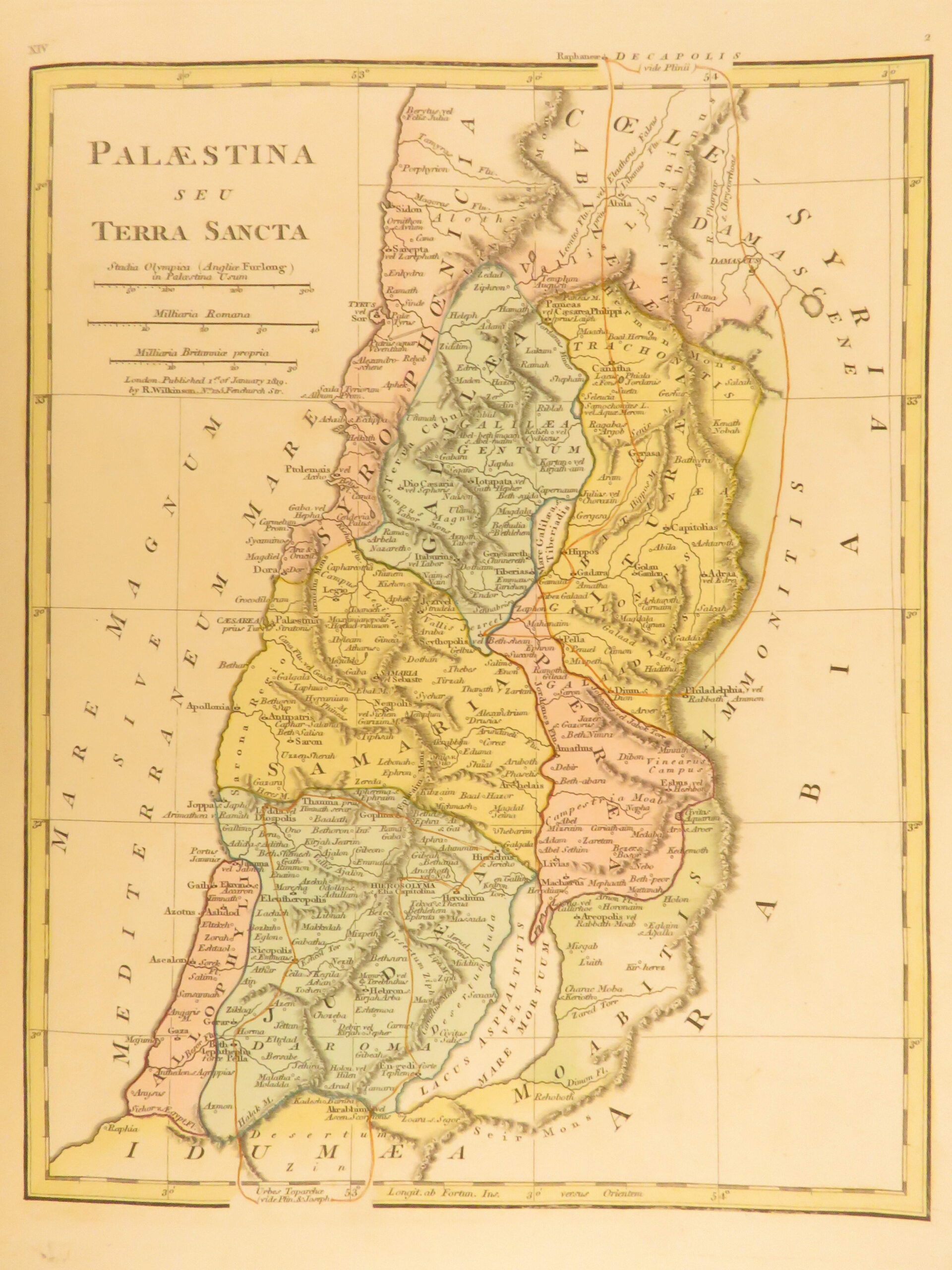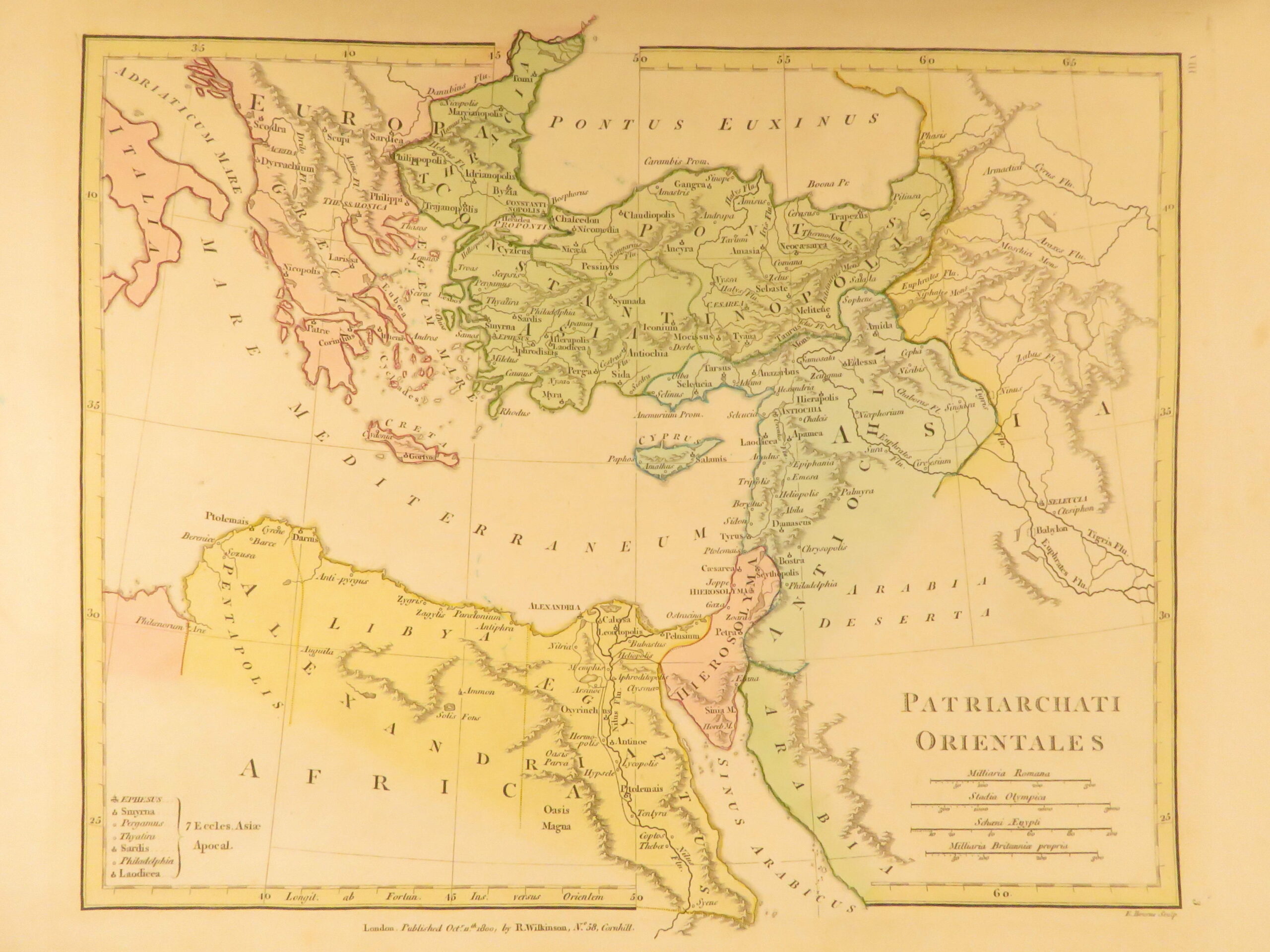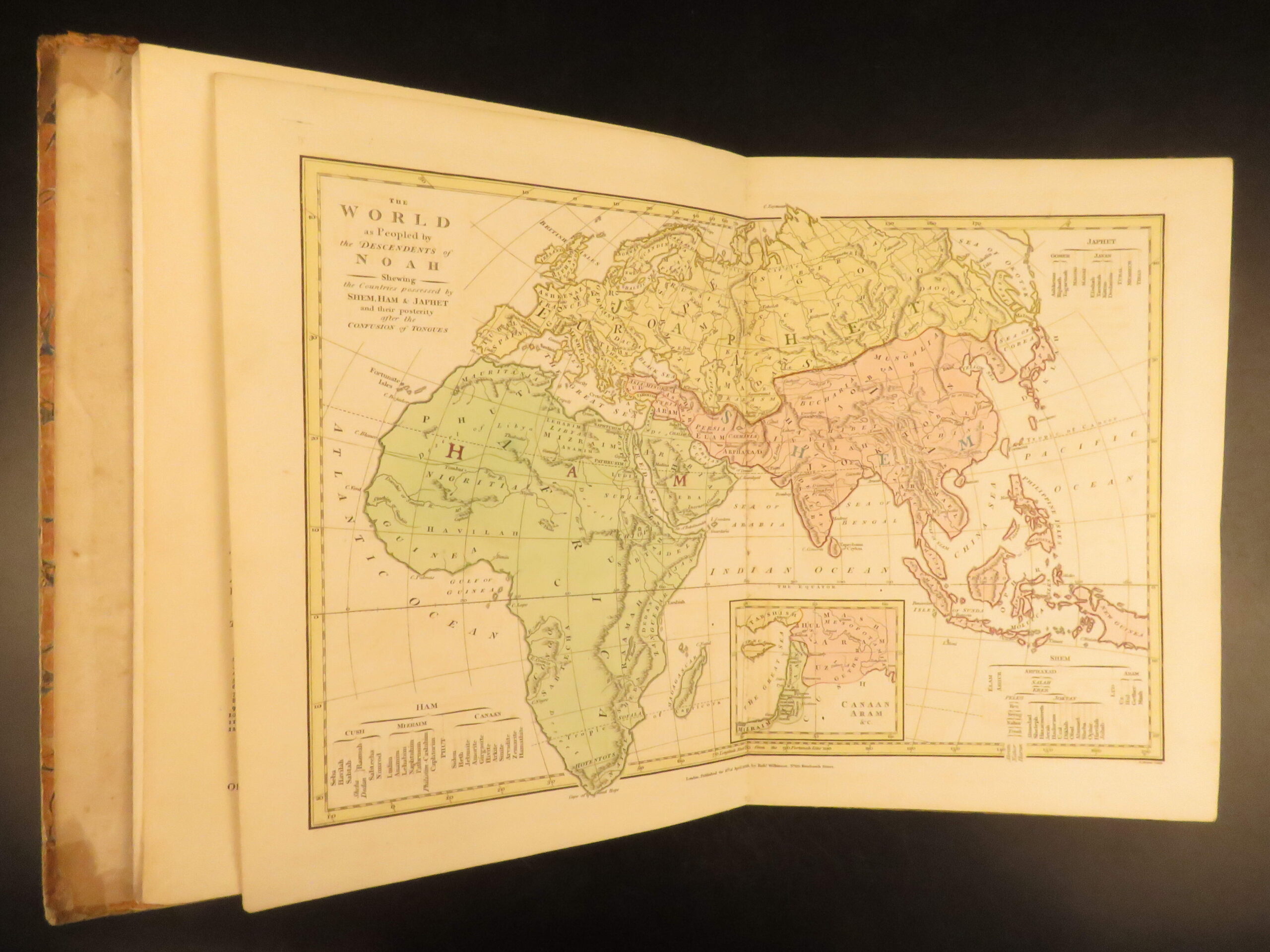 Atlas Classica by Robert Wilkinson is a folio-sized atlas published in London 1820. It includes 46 engraved maps, each beautifully hand-colored. This collection of maps includes views of Ancient Egypt, Greece, and Britain, as well as a map of the travels of Anacharsis. It also contains numerous maps of the Holy Land as it was at different points throughout the Bible.
