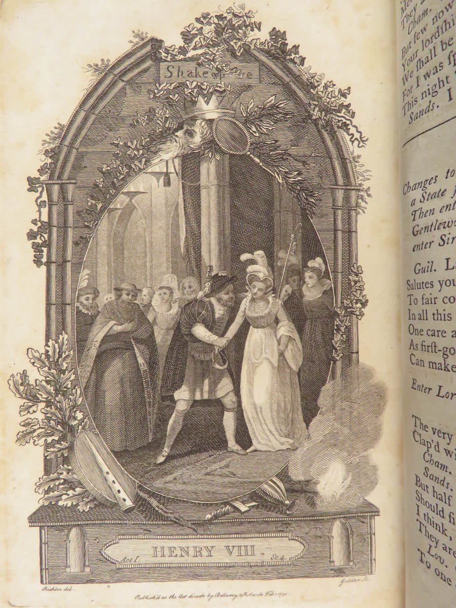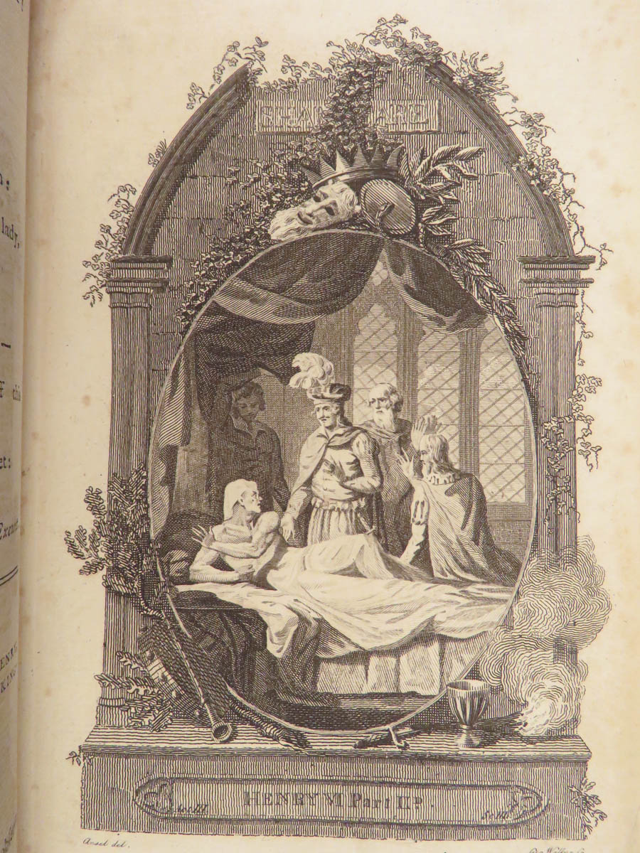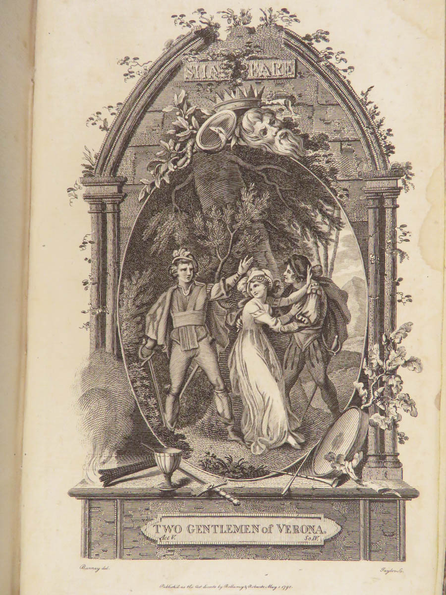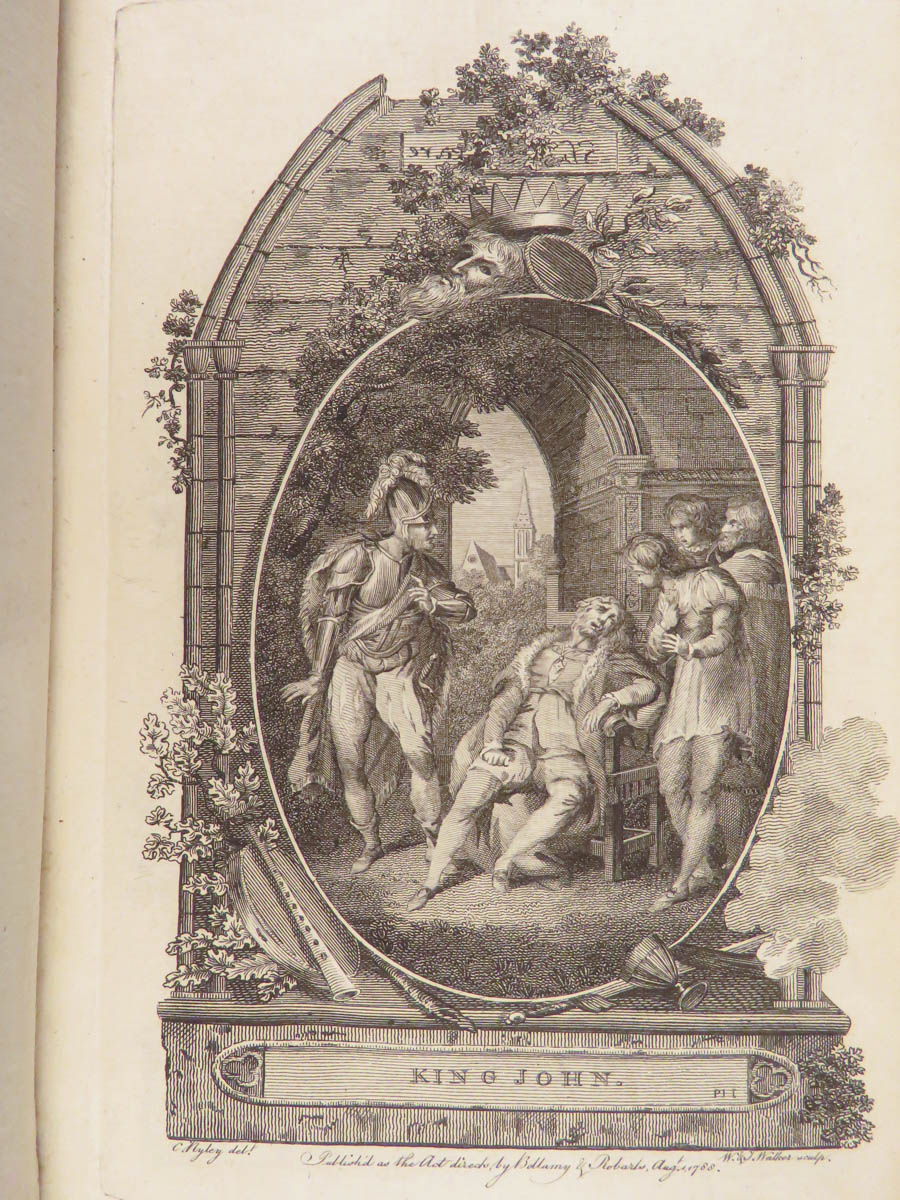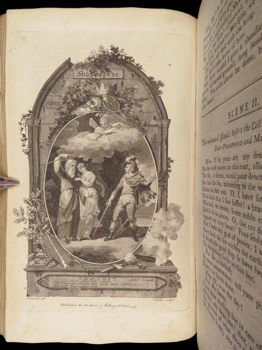 The Plays of William Shakspeare published in 1796 in London was an impressive and highly collectable set of the complete plays of Shakespeare. This set featured numerous allegorical engravings as well as illustrations depicting scenes from the plays themselves.