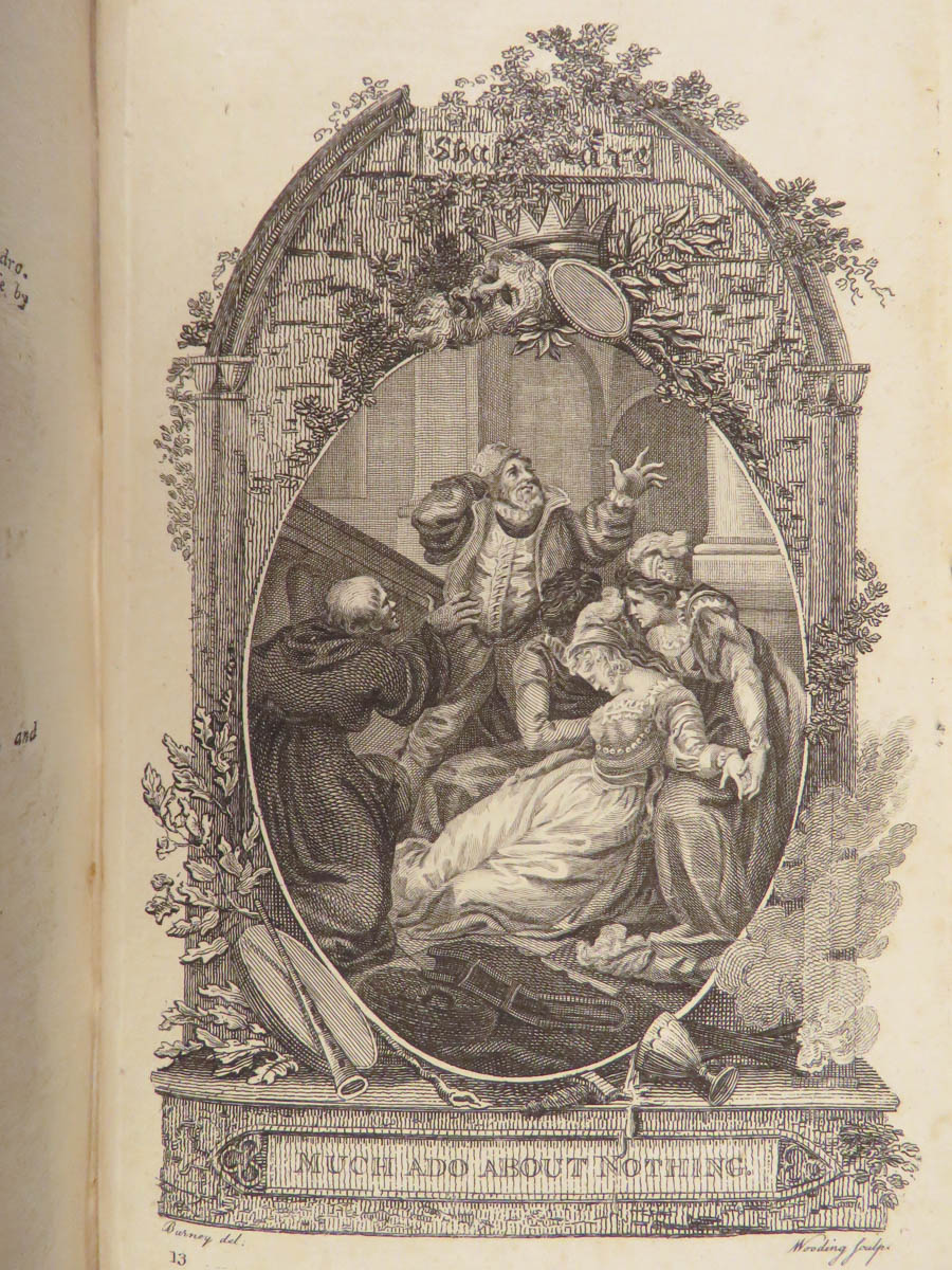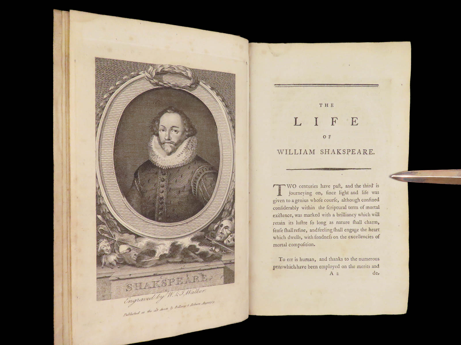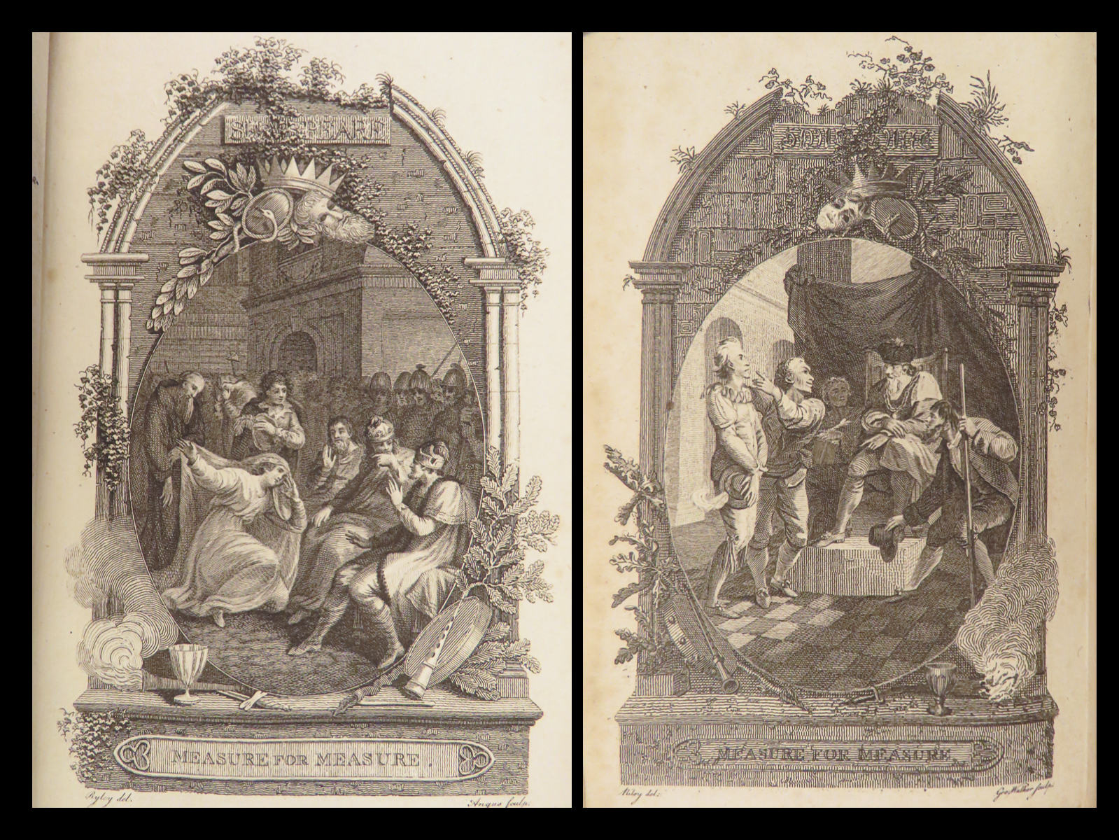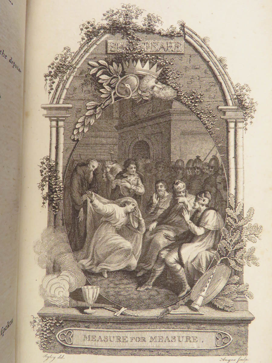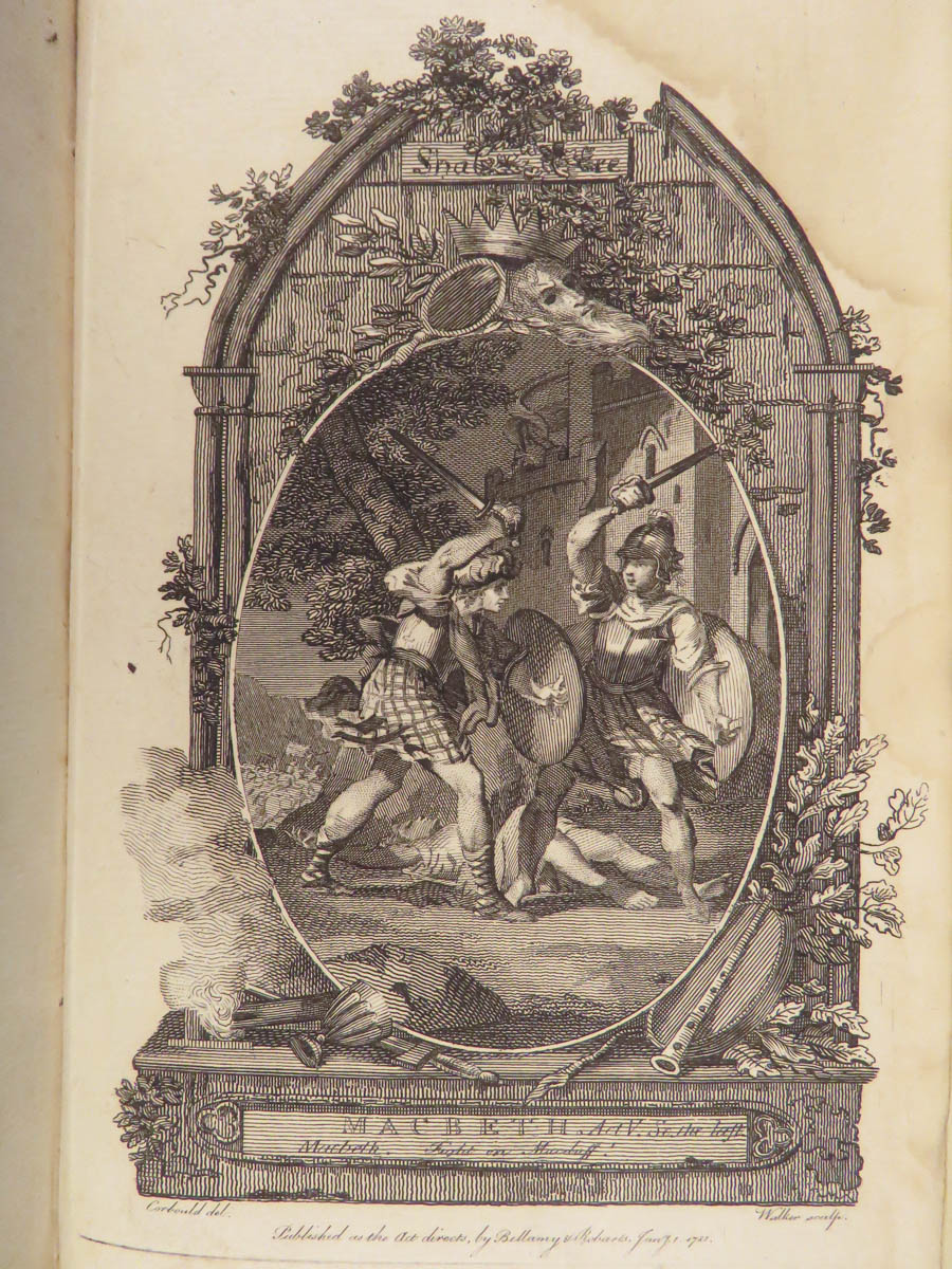 The Plays of William Shakspeare published in 1796 in London was an impressive and highly collectable set of the complete plays of Shakespeare. This set featured numerous allegorical engravings as well as illustrations depicting scenes from the plays themselves.