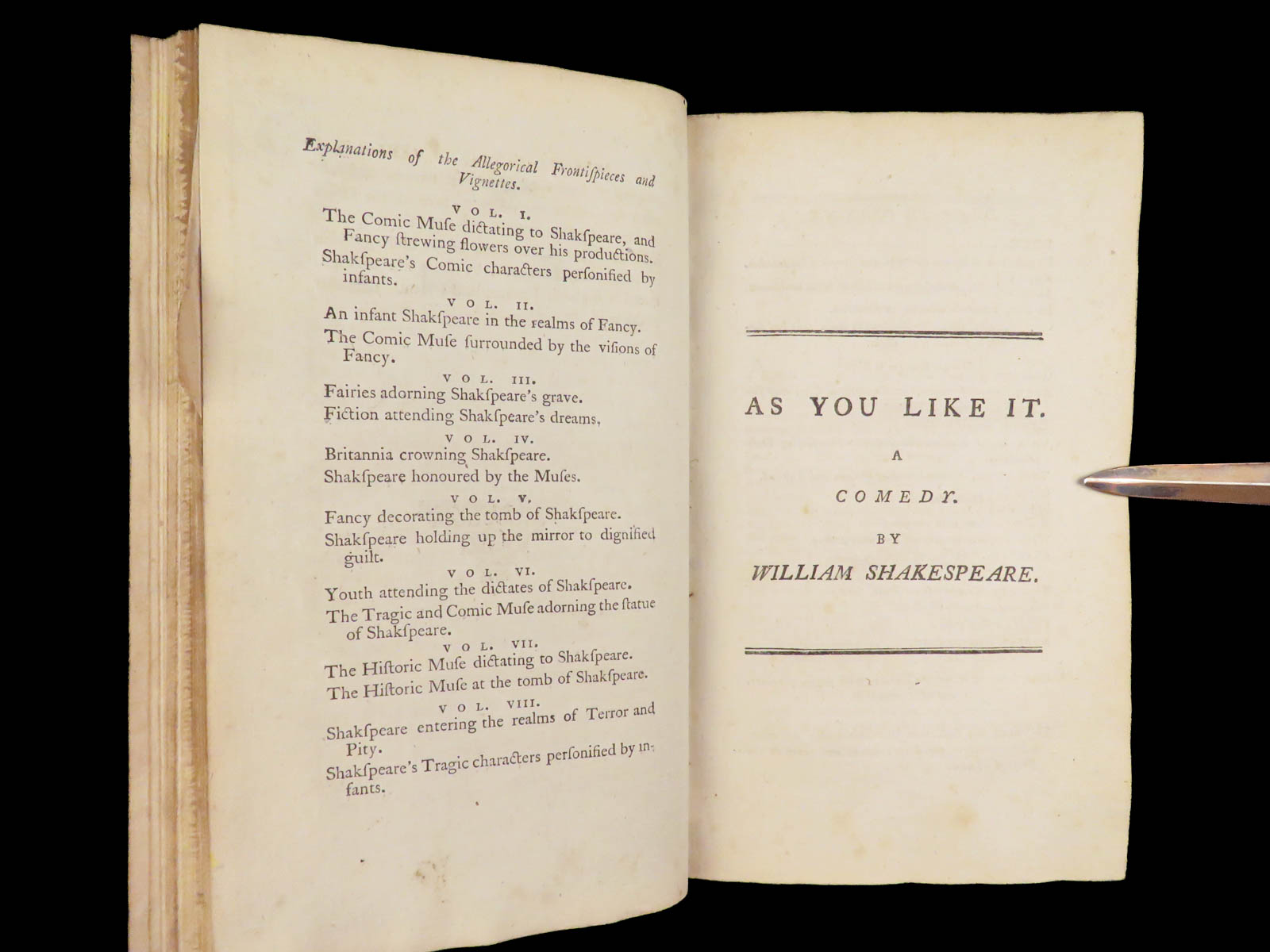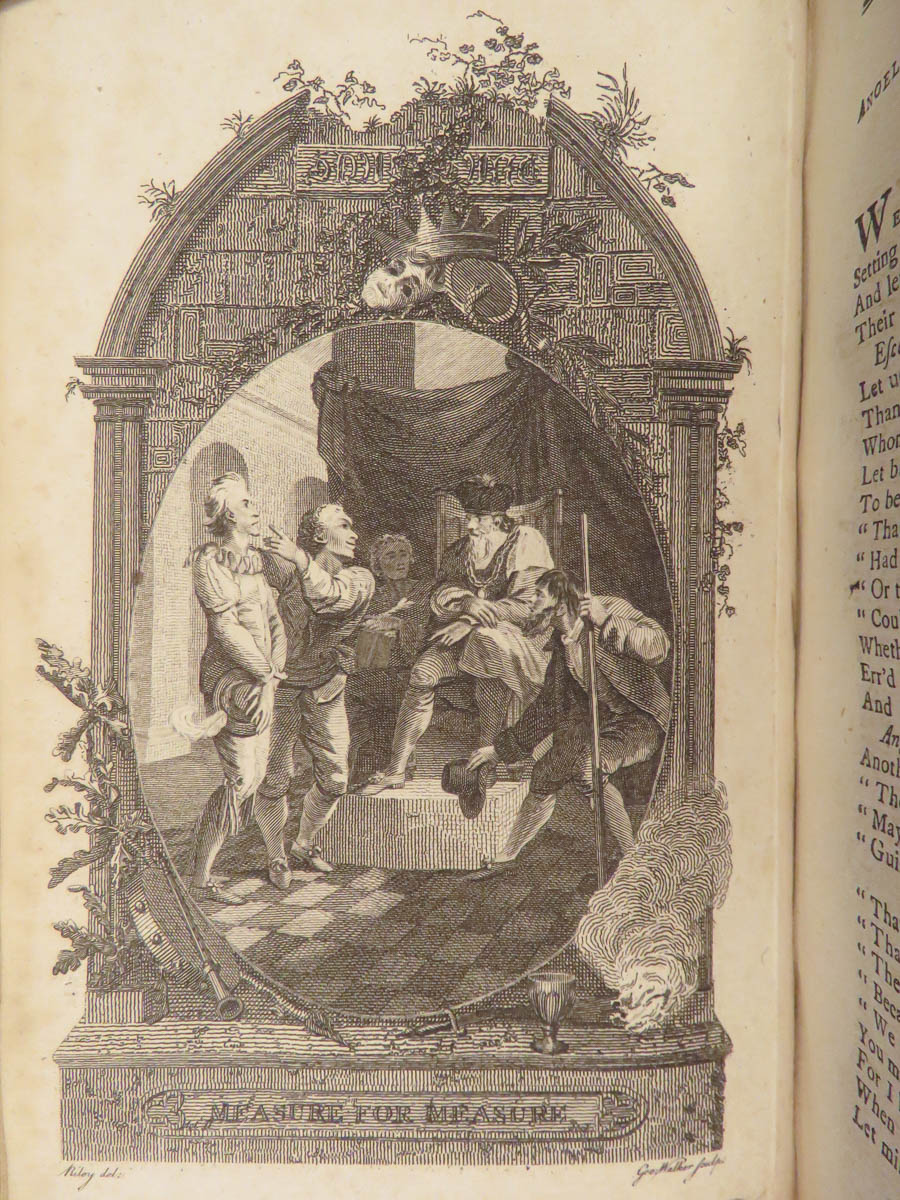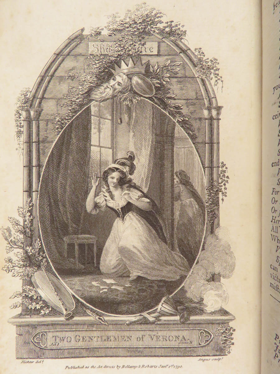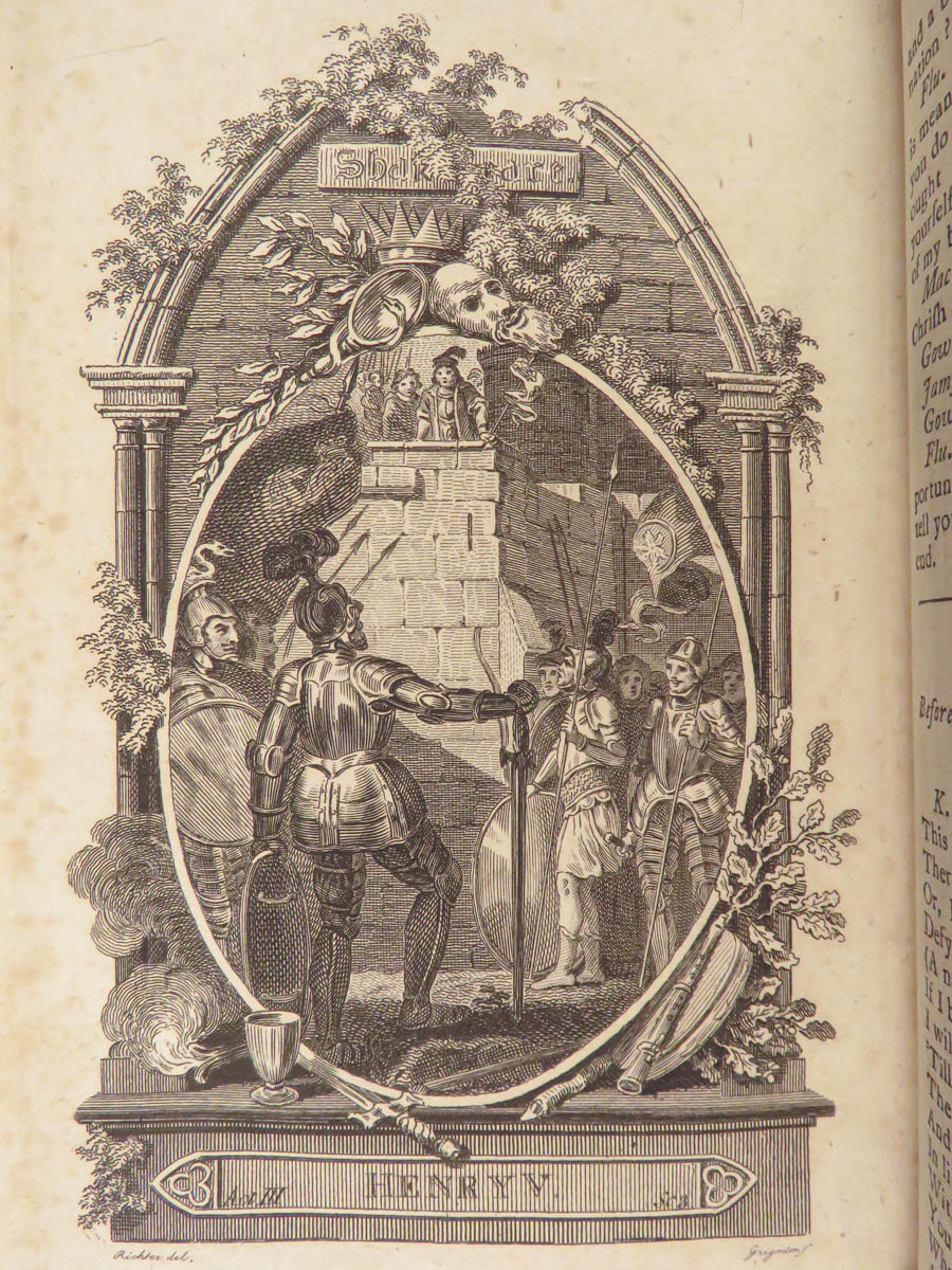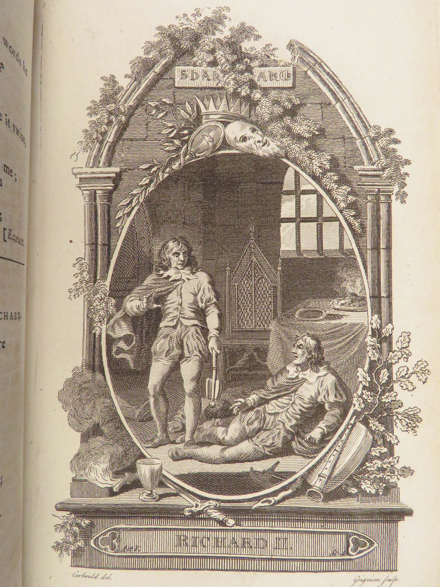 The Plays of William Shakspeare published in 1796 in London was an impressive and highly collectable set of the complete plays of Shakespeare. This set featured numerous allegorical engravings as well as illustrations depicting scenes from the plays themselves.