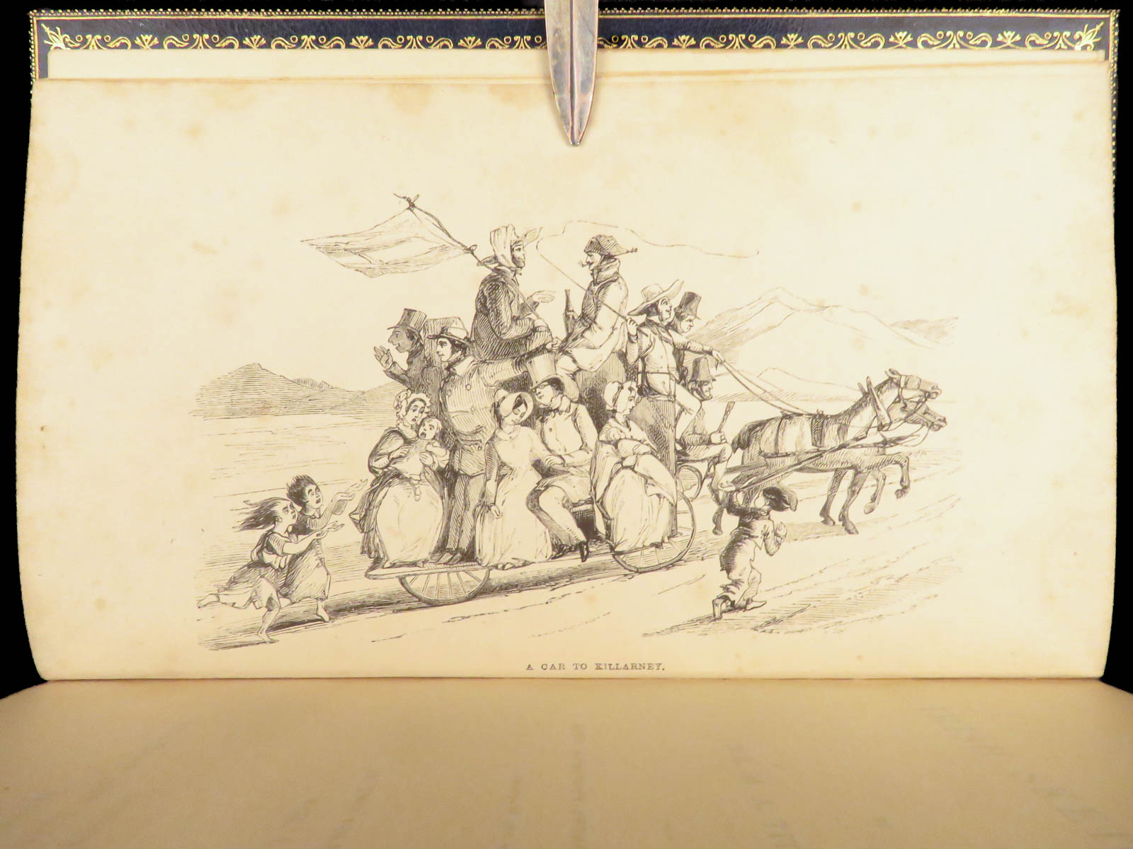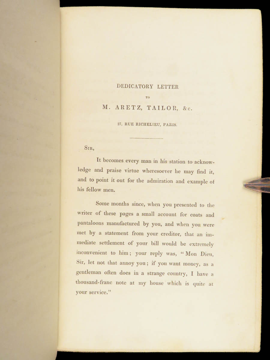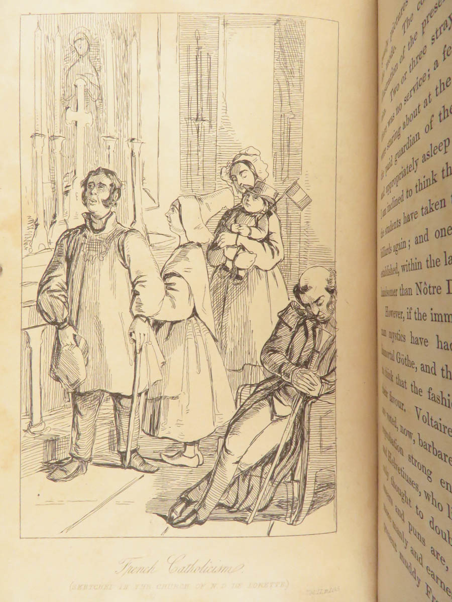 This edition of The Works of William Makepeace Thackeray was published in London in 1843. This six volume set includes shorter narratives, satirical sketches, and early prose that established his literary reputation during the Victorian period. The bindings are a striking feature, finished in blue Moroccan leather with marbled boards and gilt decoration. Titles gathered here include The Paris Sketchbook, The Irish Sketchbook, and Comic Tales and Sketches.