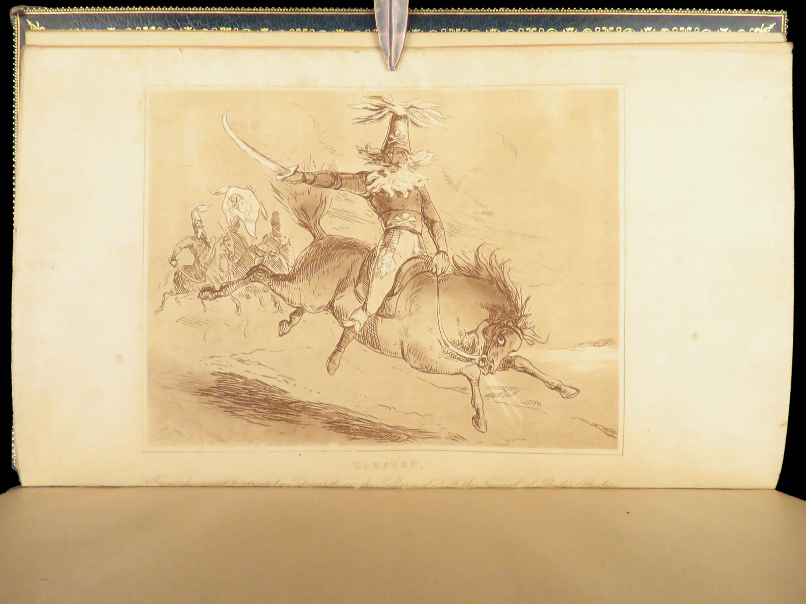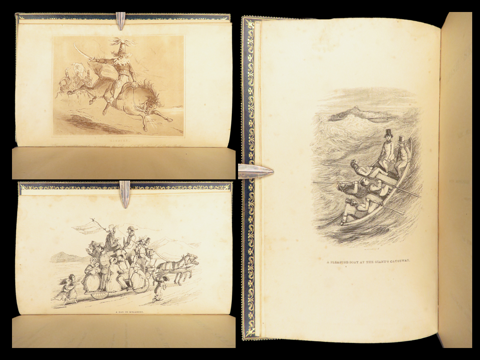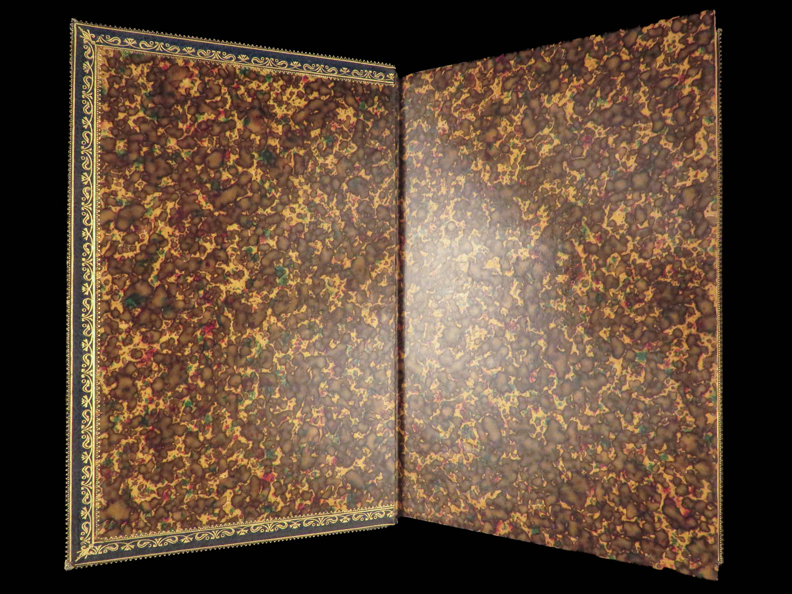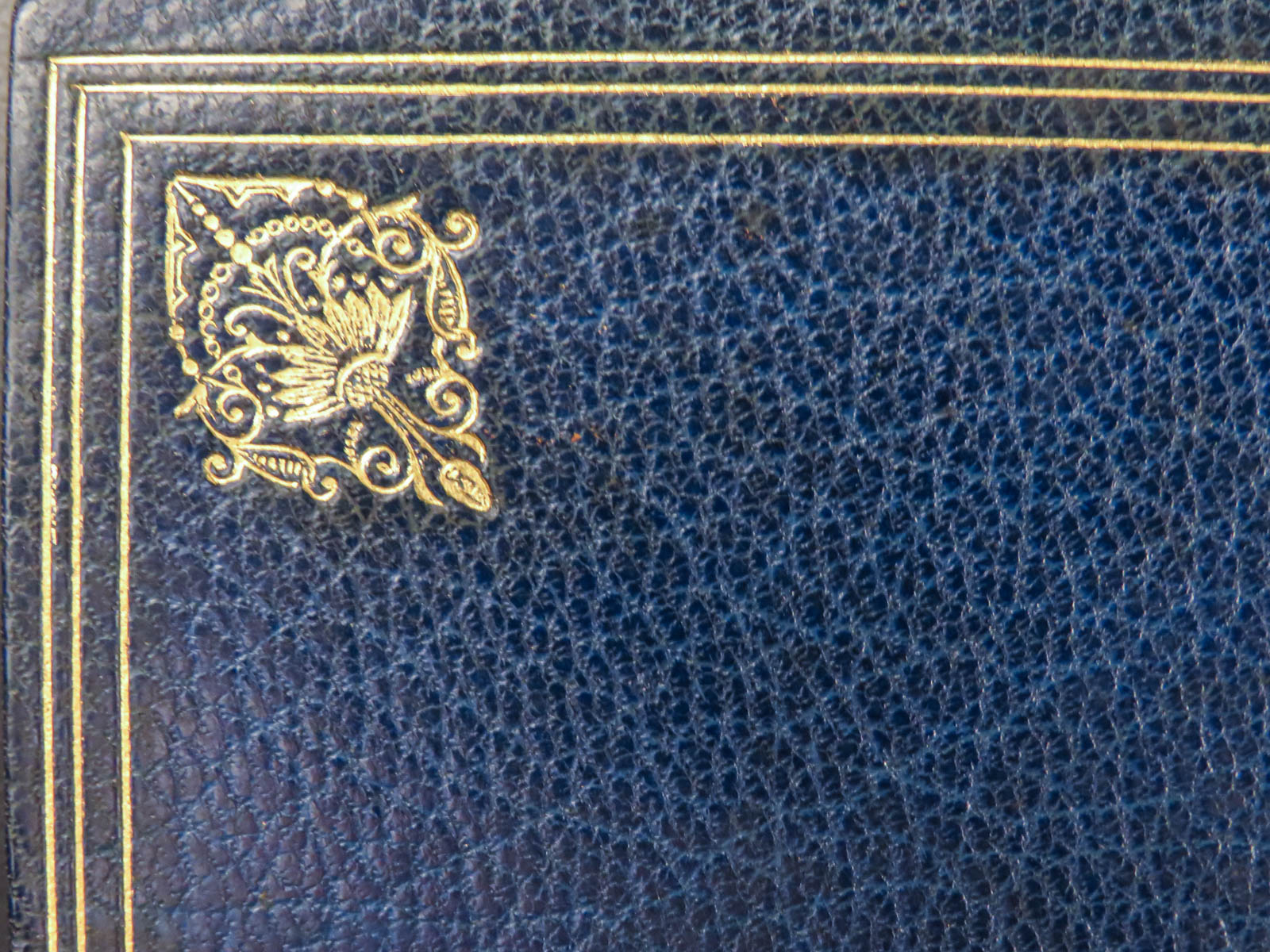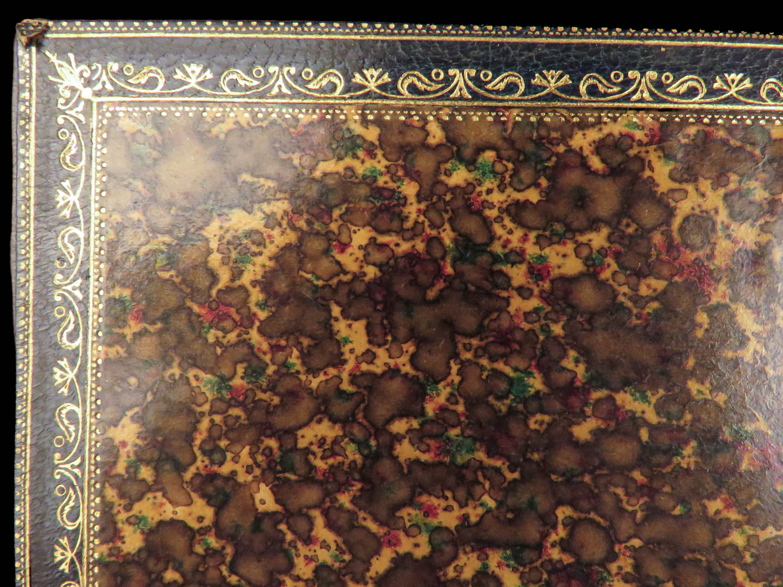 - Binding: Blue Moroccan leather with gilt decoration and marbled boards