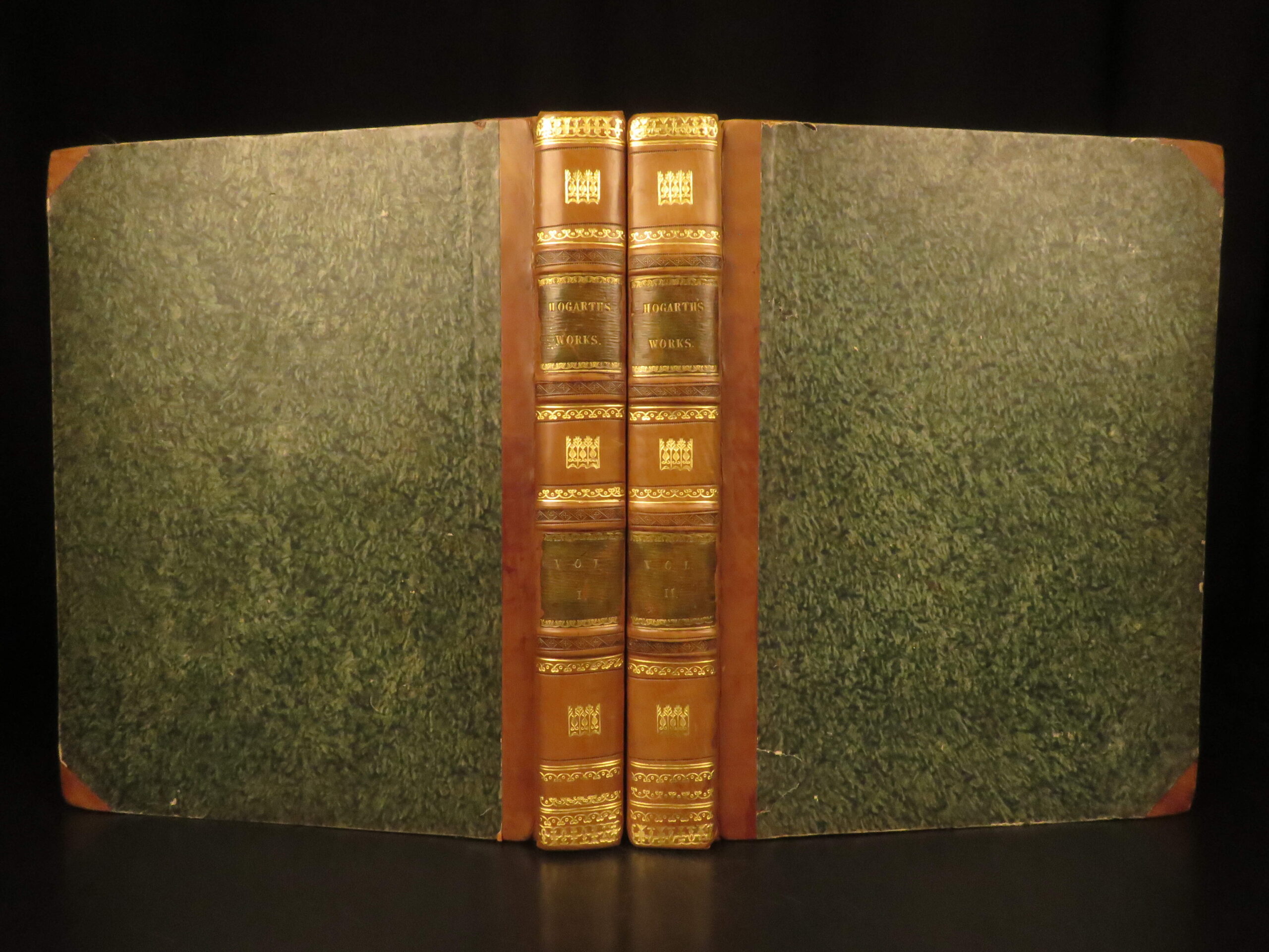 1821 – Works of William Hogarth | Illustrated Satire | 2 Leather Folio Volumes